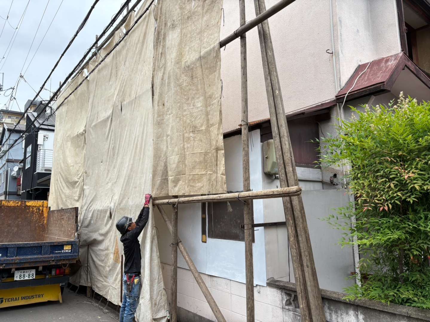 ②足場の組み立て及びシート張り