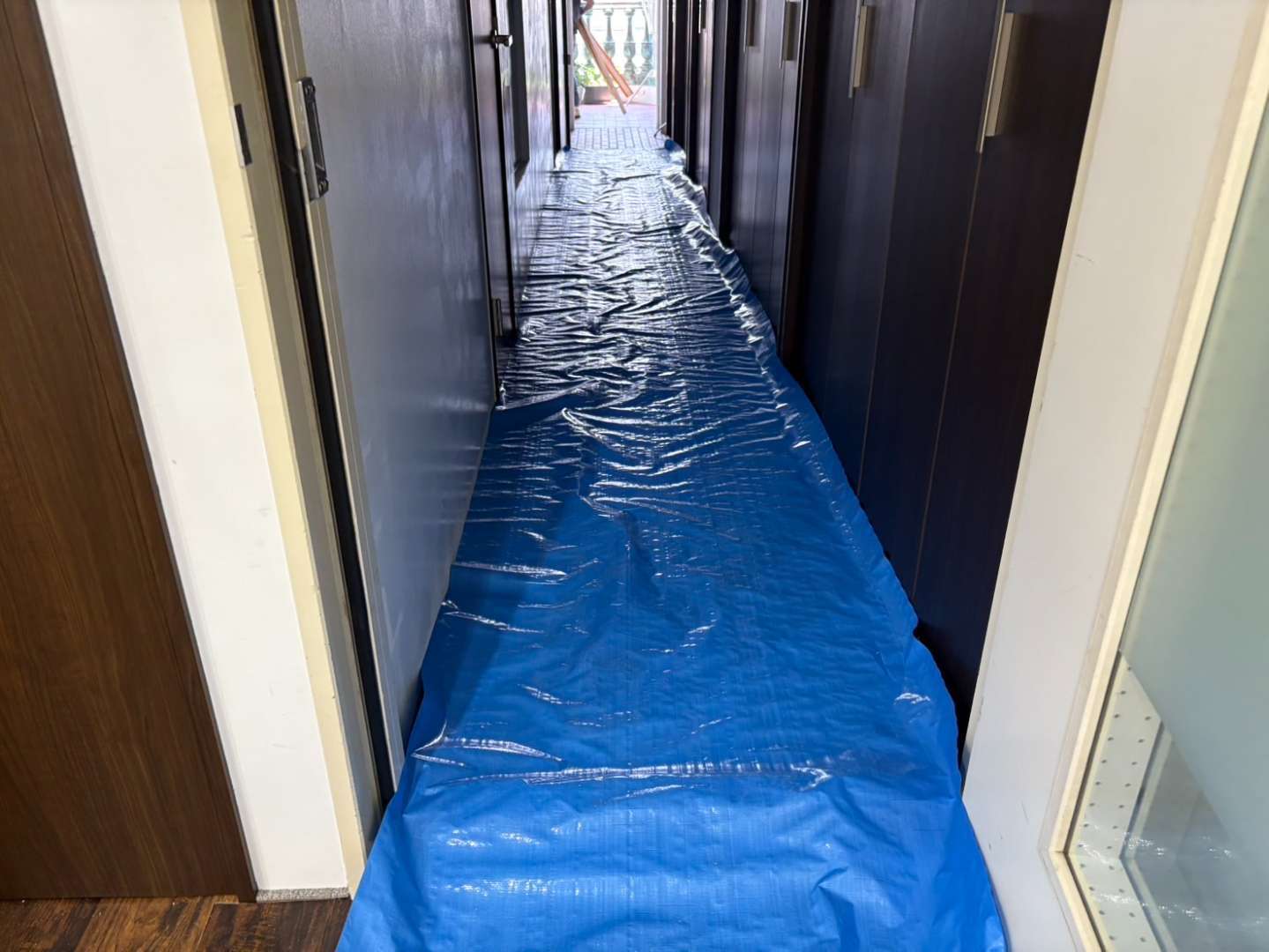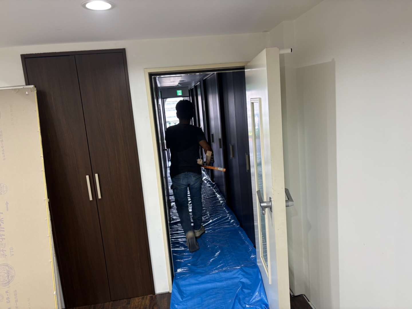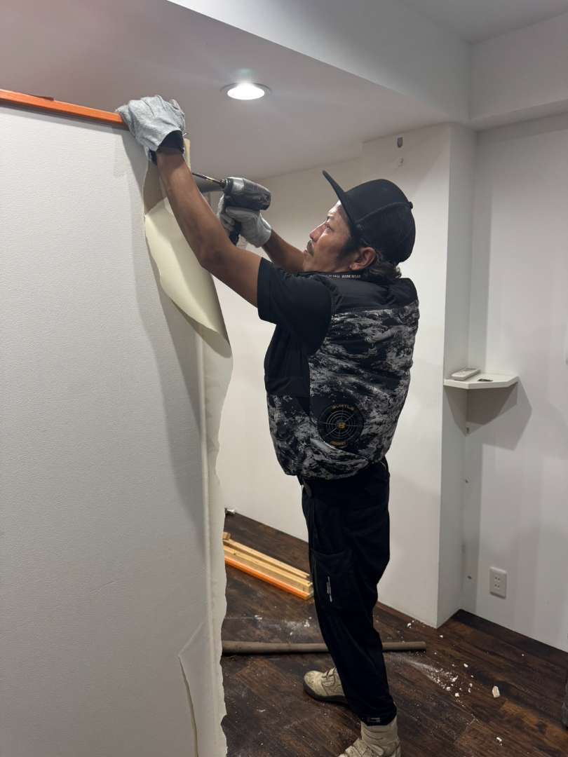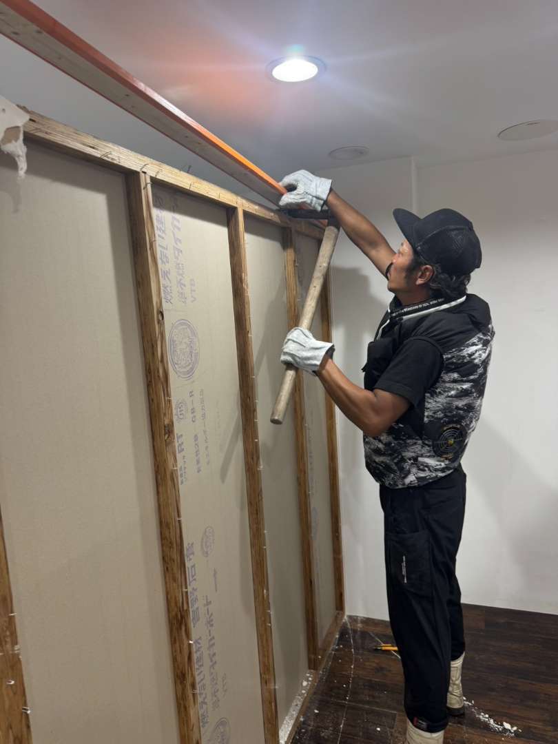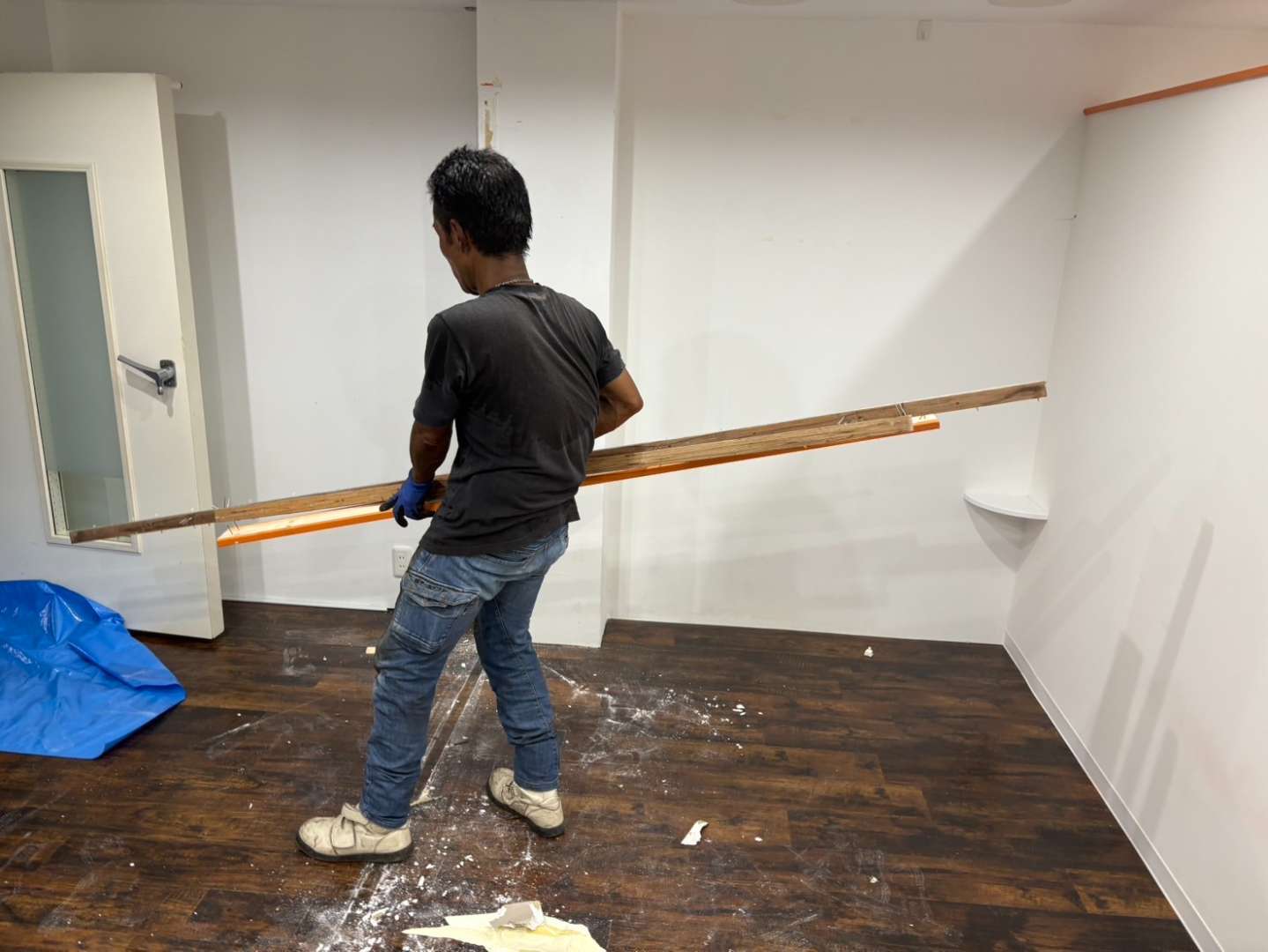 先ずは、搬出経路を養生し、木地と石膏ボードに分別し、又廃材をダンプまで人力で運搬しやすいよう、手で運べるくらいの大きさで解体作業を進めます。そうする事で、作業後の清掃もスムーズに進みます👍