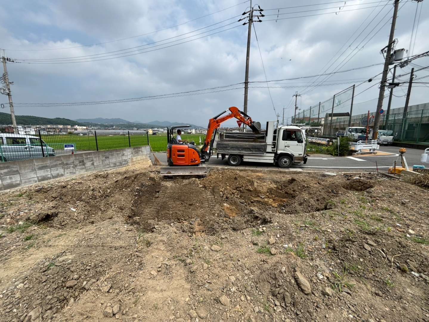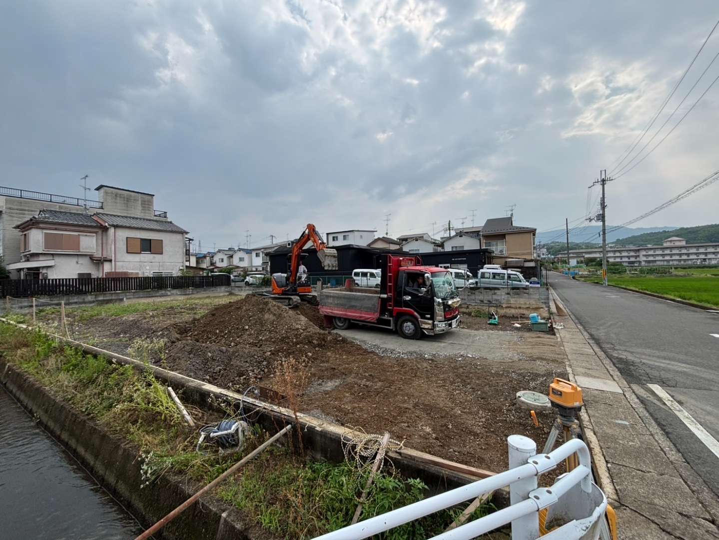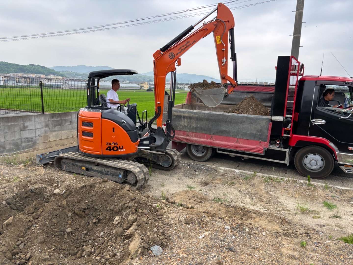 今回の現場は、いつもお世話になっております協力業者様にお願いして「向日市物集女町ヲサン田]にて、残土撤去処分工事です🚧