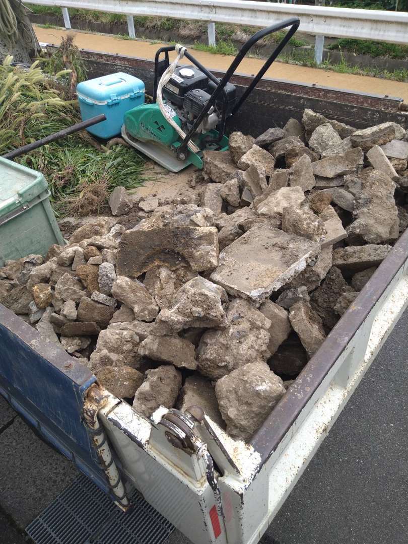 雑草・コンクリート片・プラスチック類・ゴミなど丁寧に分別し、又、奥に進むにつれ砕石を敷き4Tダンプを敷地内に入れ、効率よく作業を進めていただいております🙆♂️