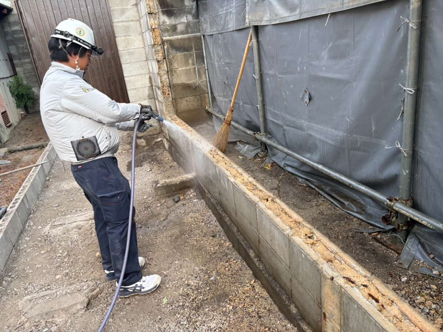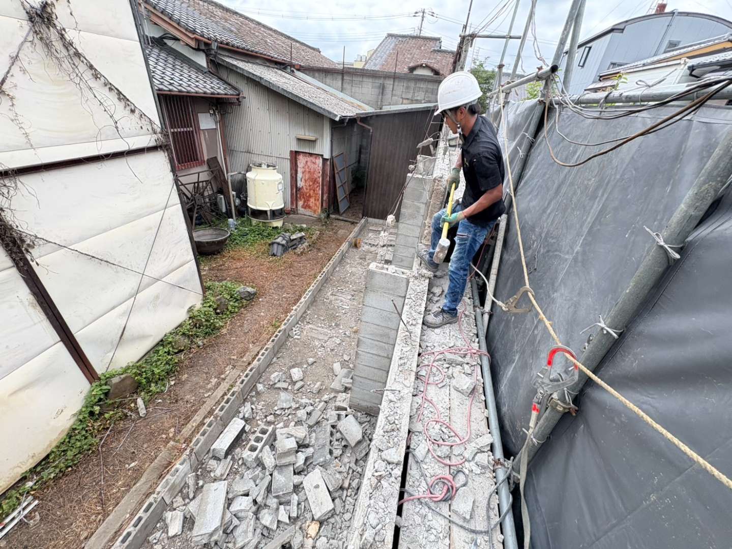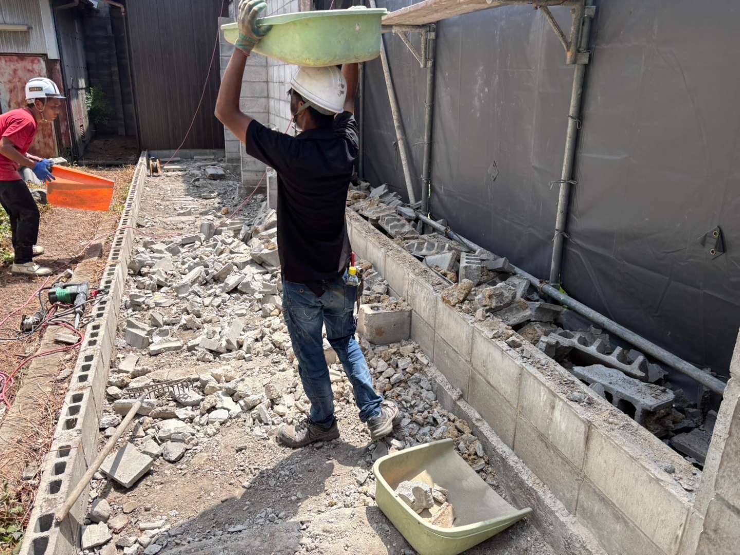 ブロック解体後は、鉄筋をカットし天場を整えます
