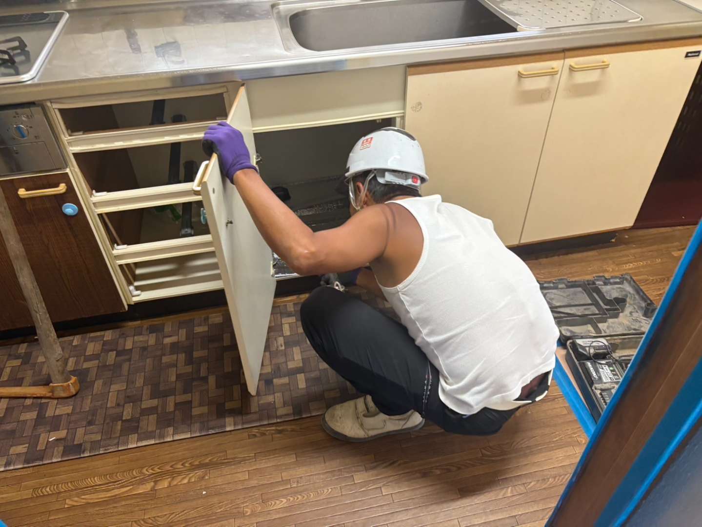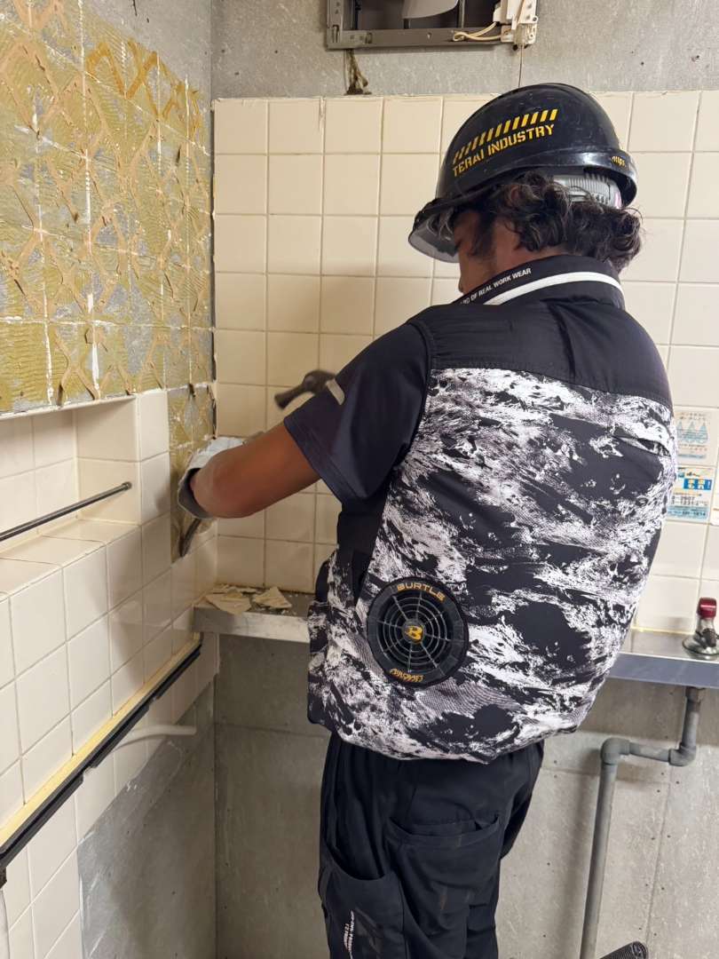 作業の流れとしては、まずは搬出路及び各所養生→キッチン撤去→壁に貼られたタイルの撤去→廃材の搬出→清掃→完工👷♂️