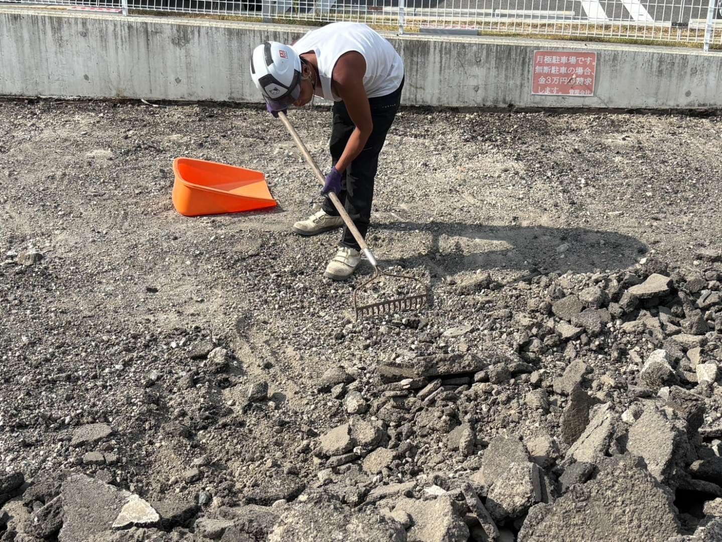 ①継続作業でアスファルトがらの積込搬出