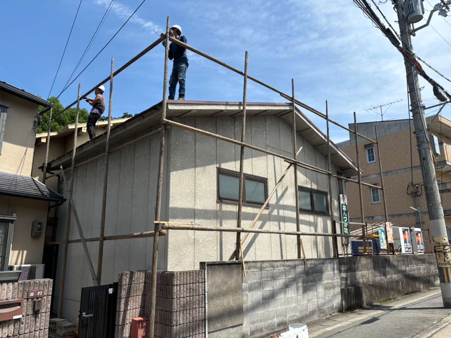 今回の現場は、「左京区北白川上池田町」にて木造2階建事務所約16.7坪・鉄骨造平屋作業場約13.5坪の解体撤去処分工事🏡