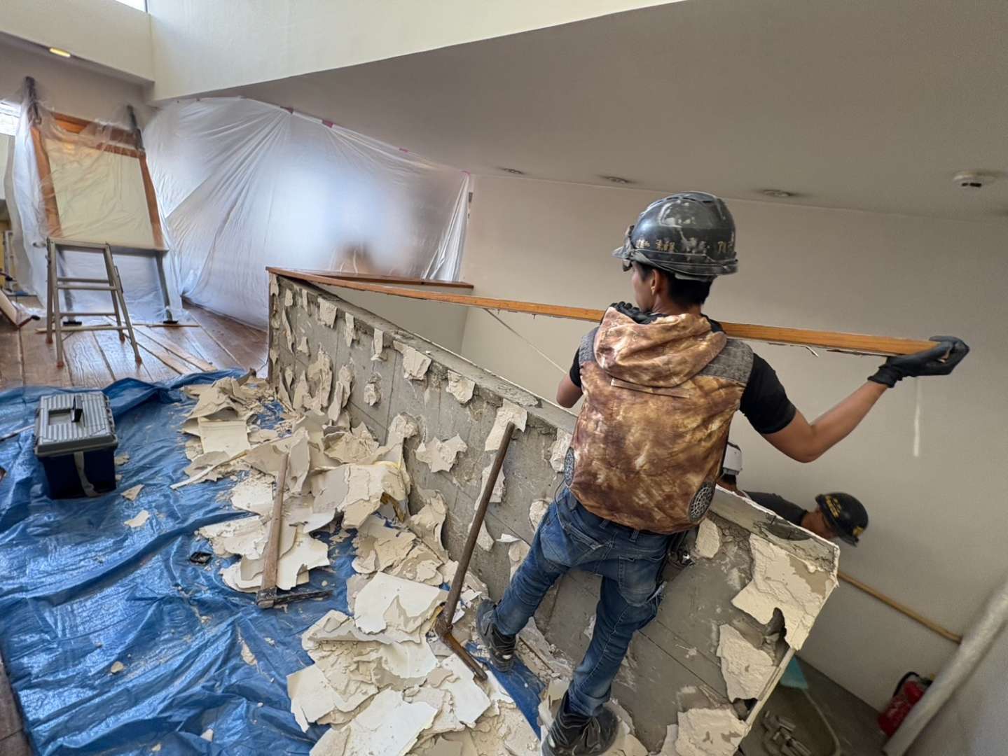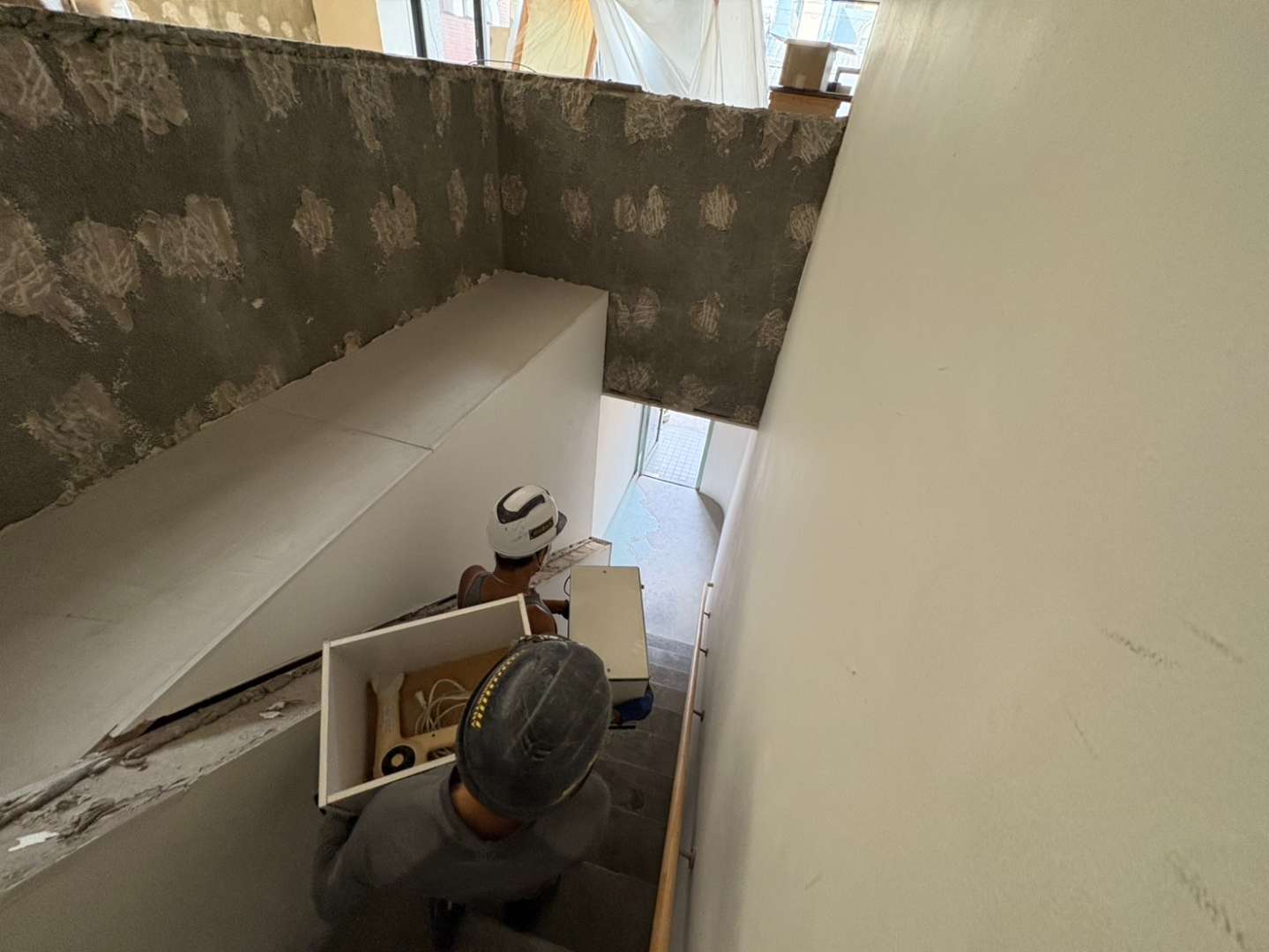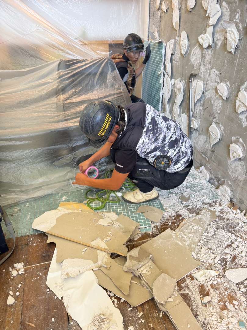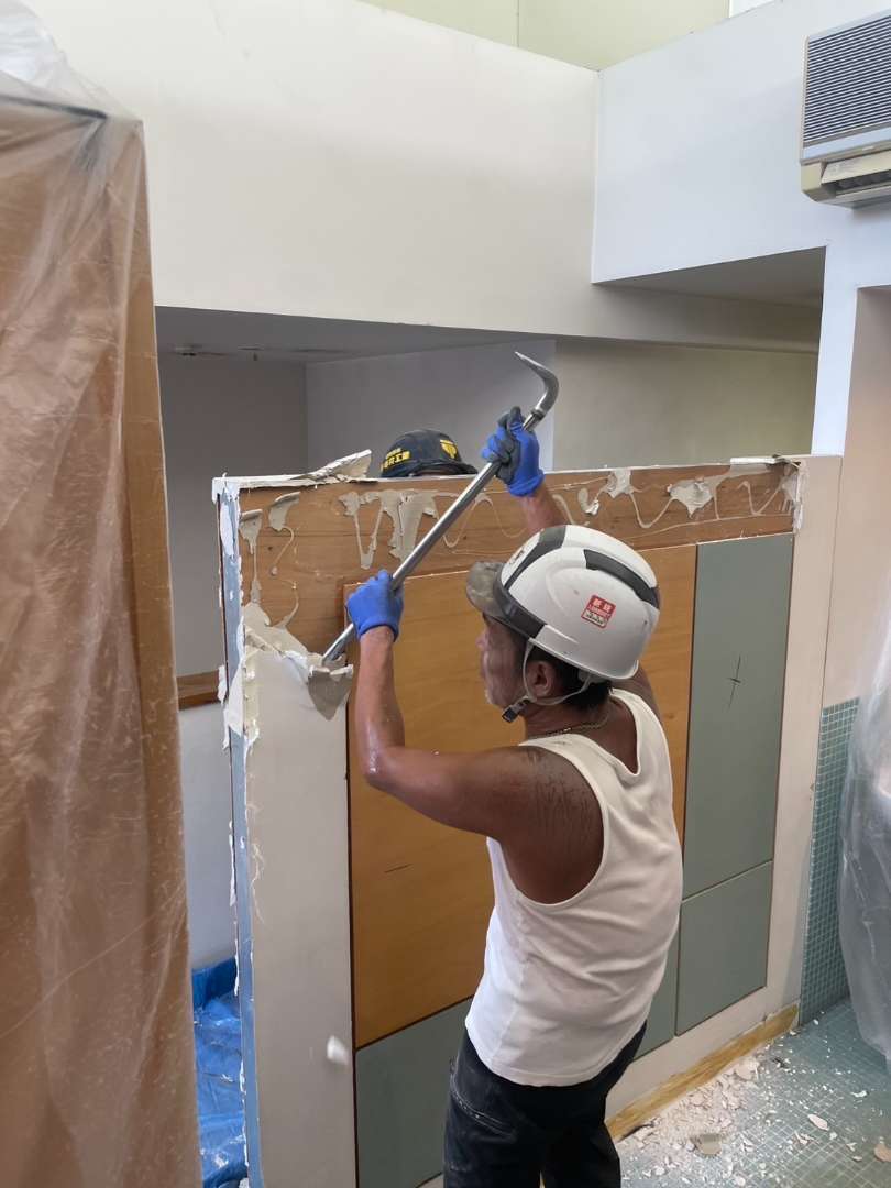 ここからの作業は、コンプレッサーを使用してのハツリ作業となるため、騒音振動の影響の出る階下の店舗様や階上の方との協議の上進める必要があり、すぐには再開できない状況です😅