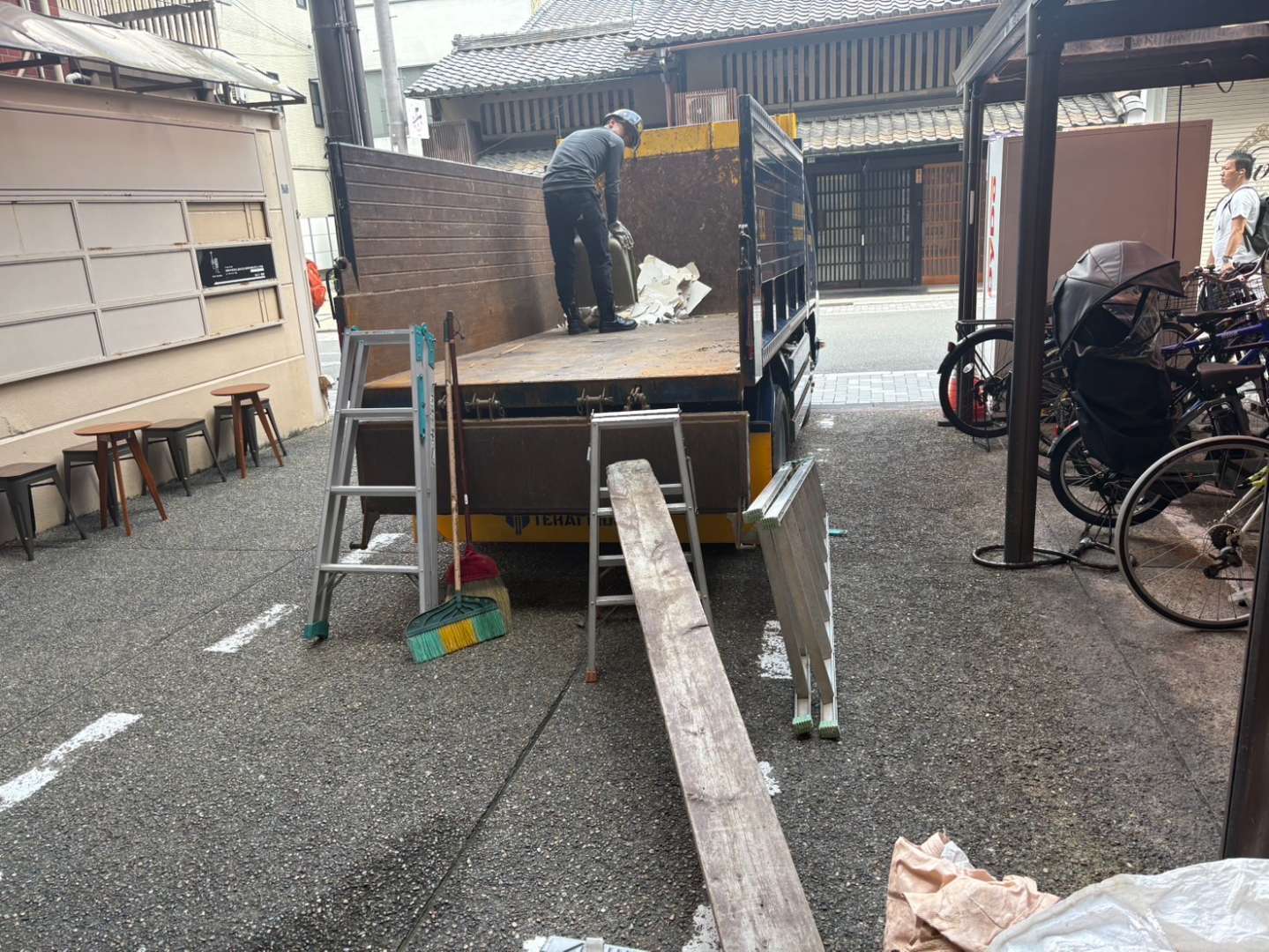 今回の現場は、「中京区御倉町」にて美容室改修工事に伴う内部部分解体撤去処分工事🚧