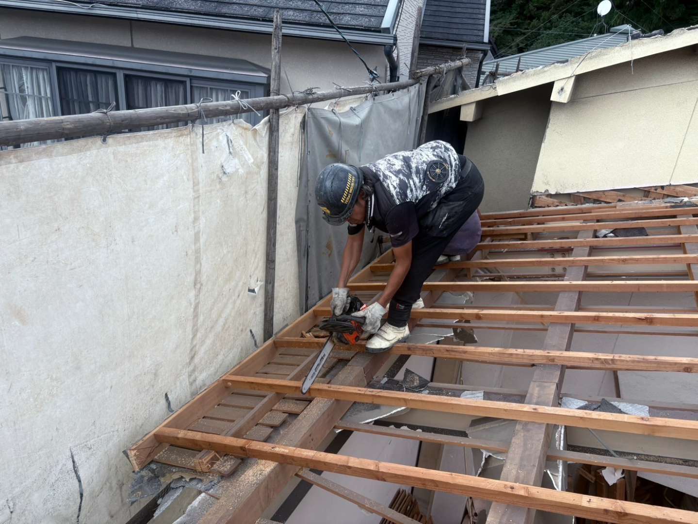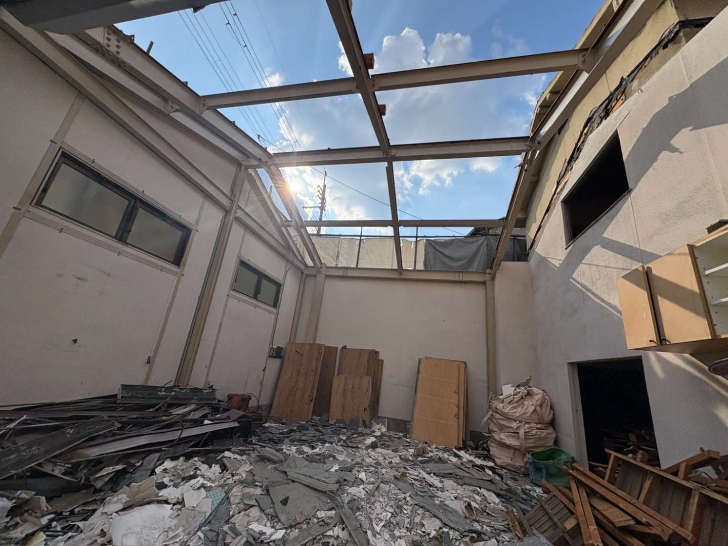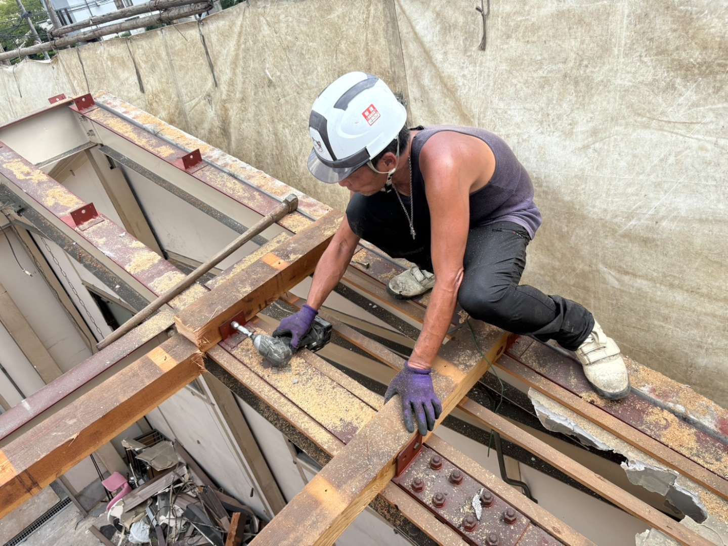 鉄骨部分の木も取れ、いよいよ躯体解体💪 ガス溶断での施工となりますので、火災事故など起こさないよう細心の注意を払い、ジャブジャブ散水しながら安全第一で進めて参ります👷