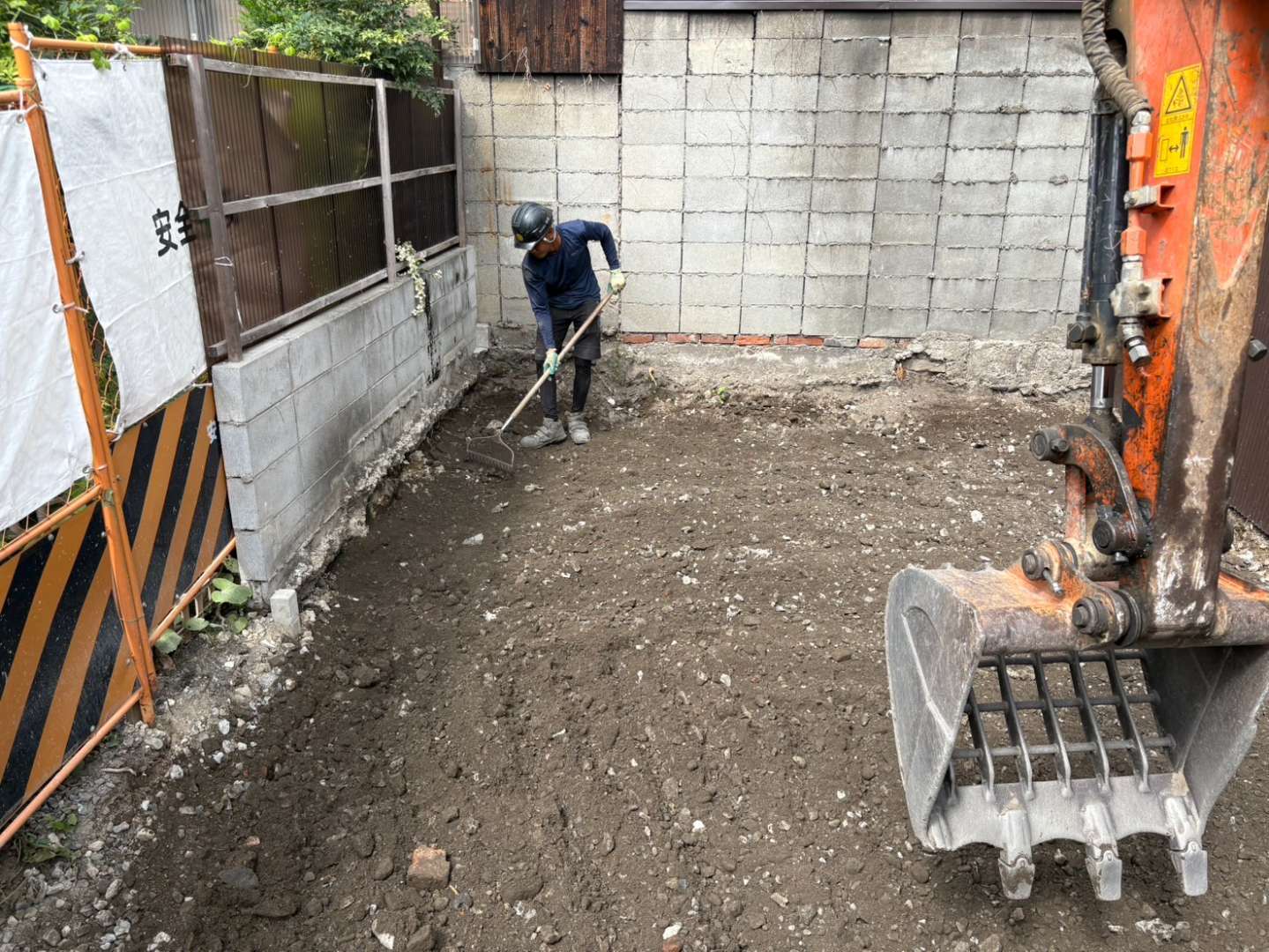 敷地の隅や、キャタ後は人力にて丁寧に均します✌️