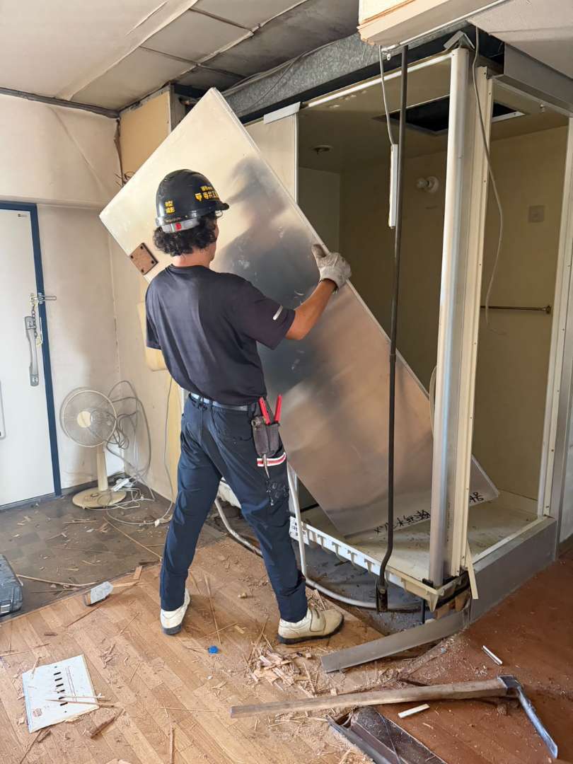 解体前に簡単に取り除けるものを先行撤去し、解体時の分別作業の軽減と、作業スペースの確保🙆♂️