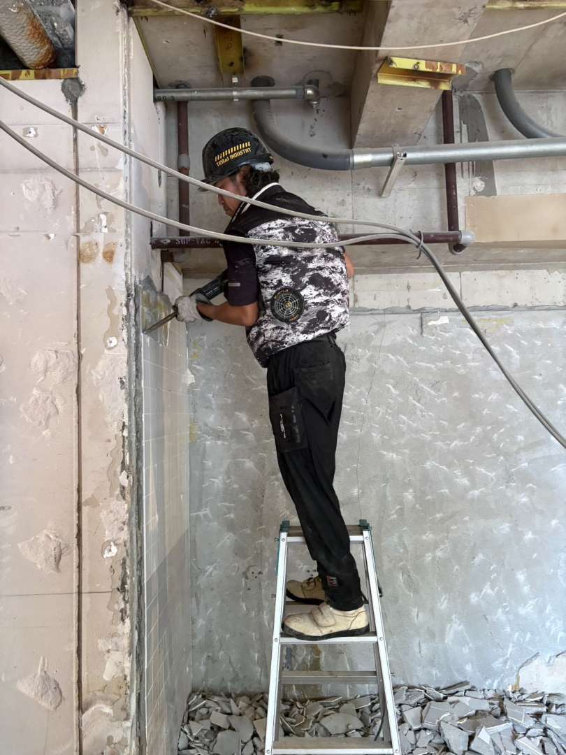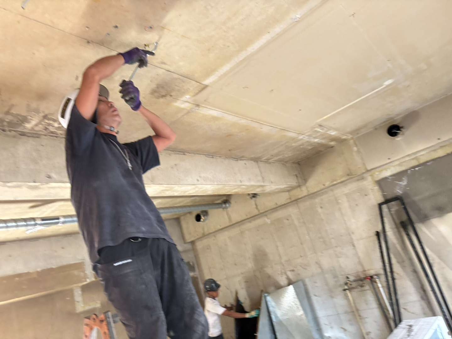 タイルの面バツリや、天井吊ボルトなどを撤去