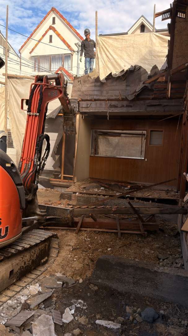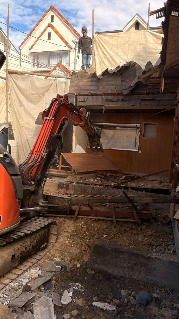 本日で上屋半分強潰れました💦 もう少し行きたいところでしたが、現場内の整理整頓と近隣清掃を最優先🙆♂️