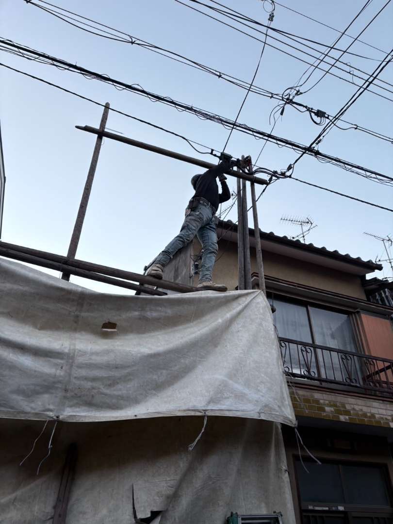 本日で2F部分の解体完了し、明日より重機を併用しての1F部分の解体スタート😊 狭い現場ですので、人力施工先行で事故や怪我の無いよう安全第一で進めて参ります👷