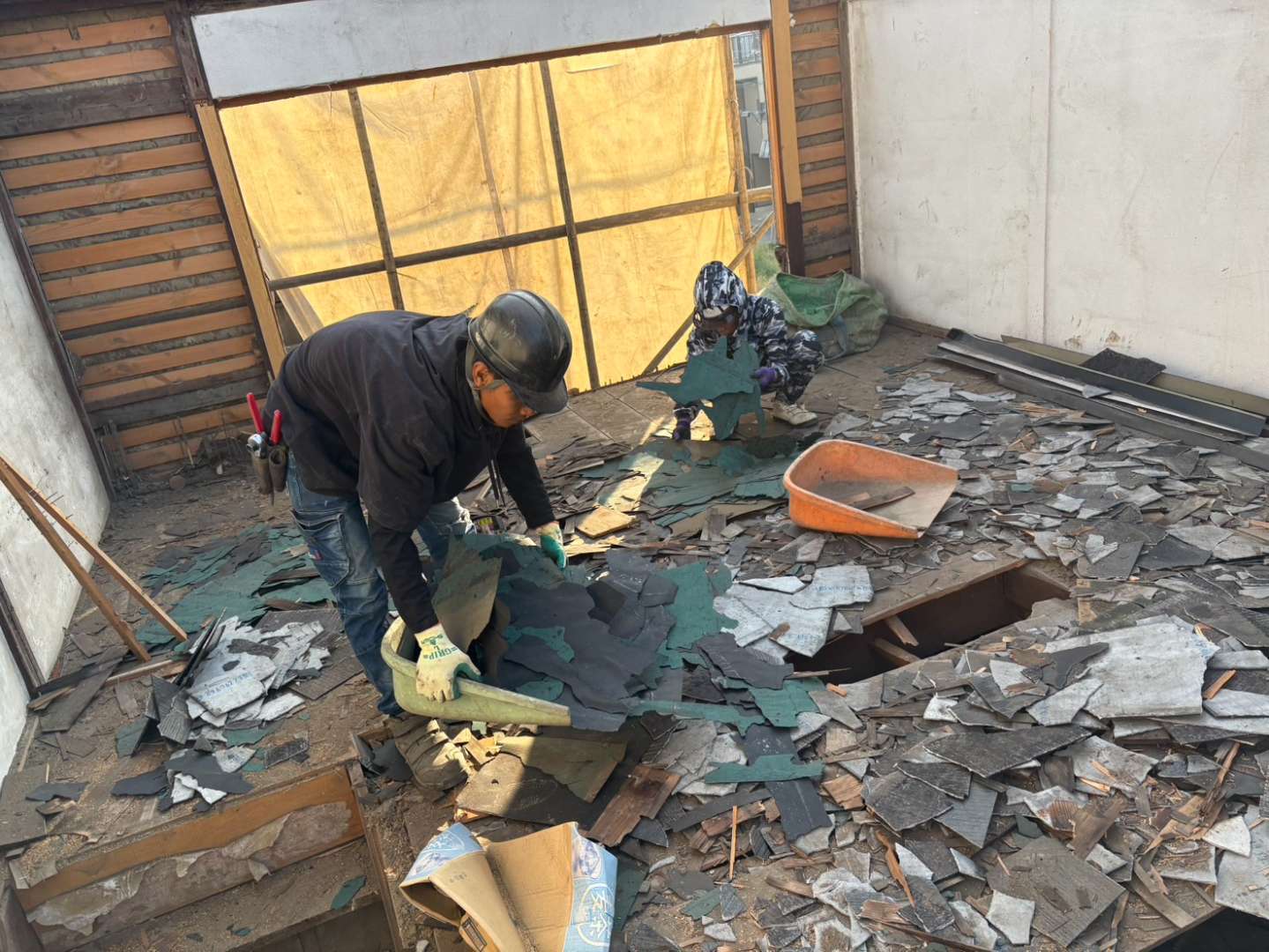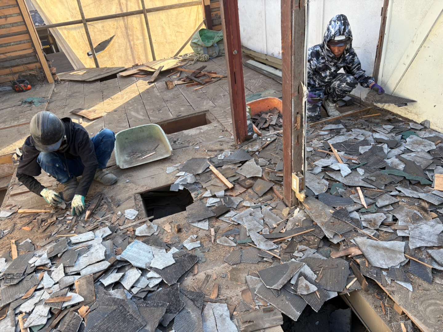 ①集積した屋根材の分別
