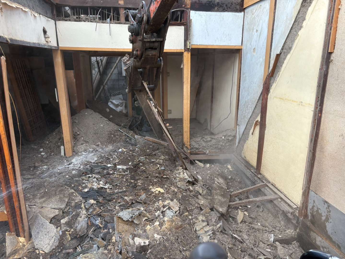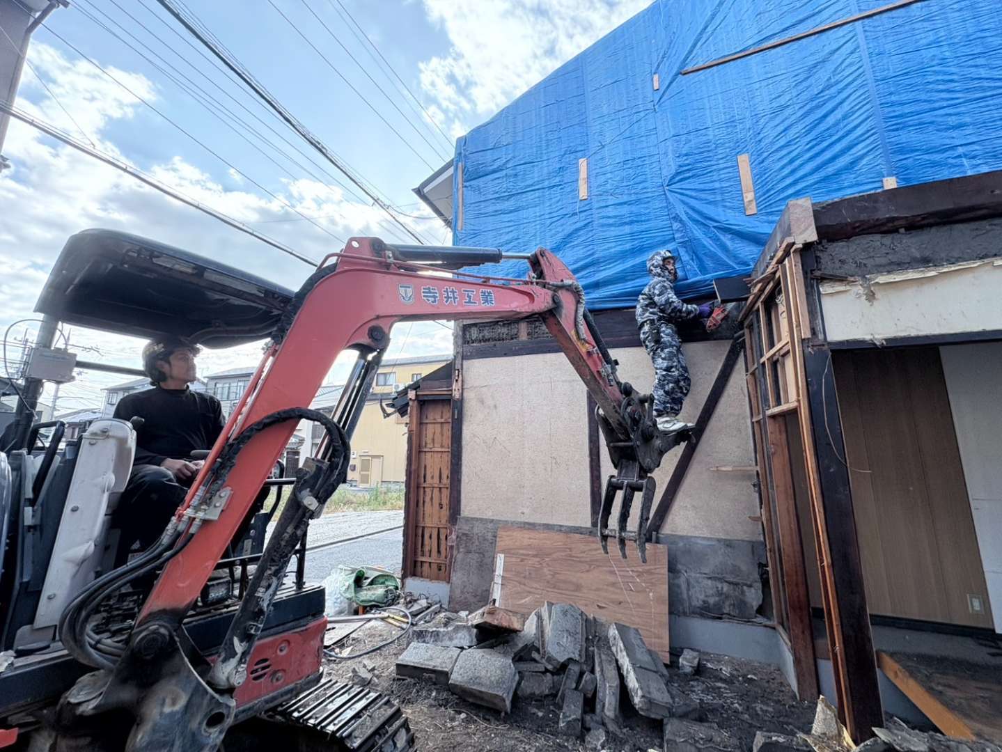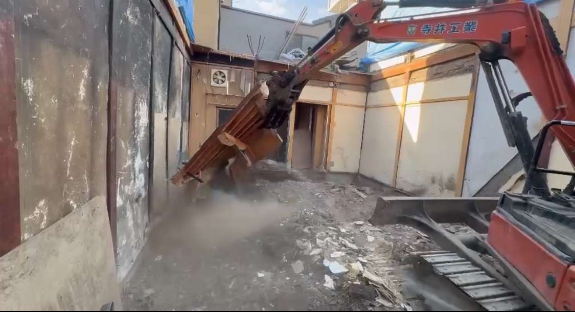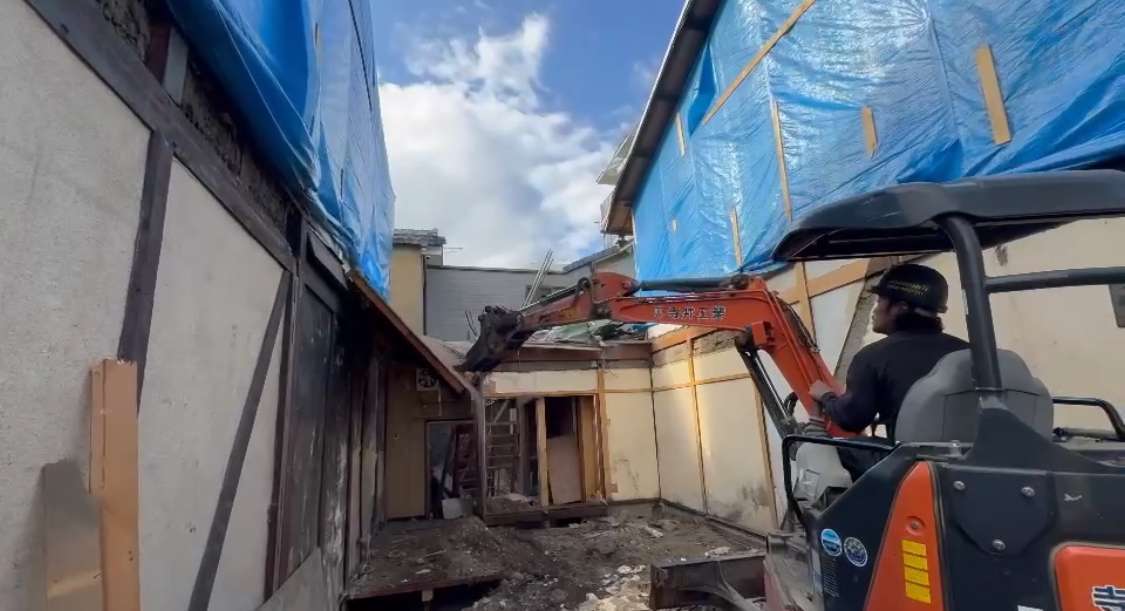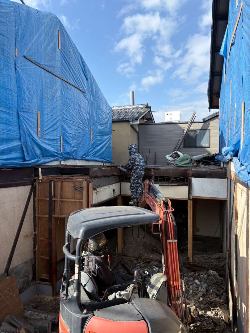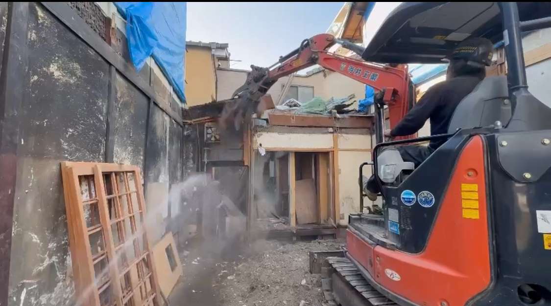 先行して人力にて縁切等を行い、慎重に重機にて解体作業を進めます🫡