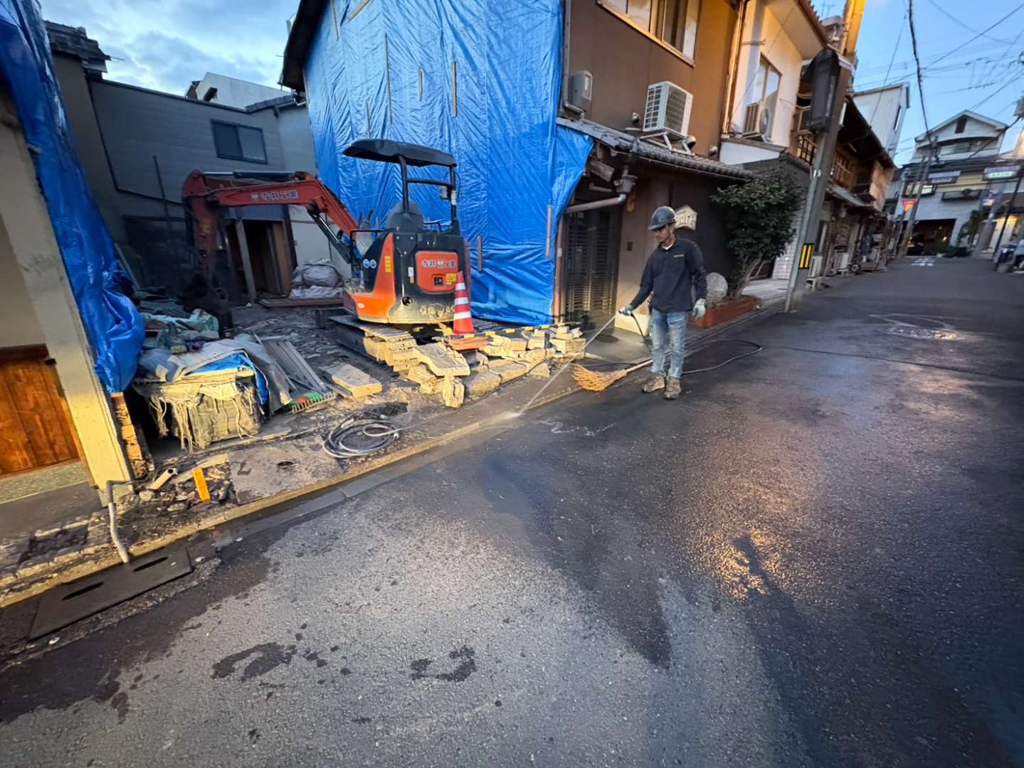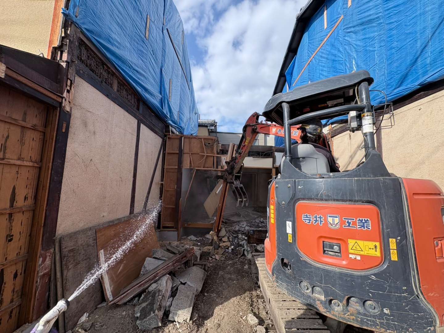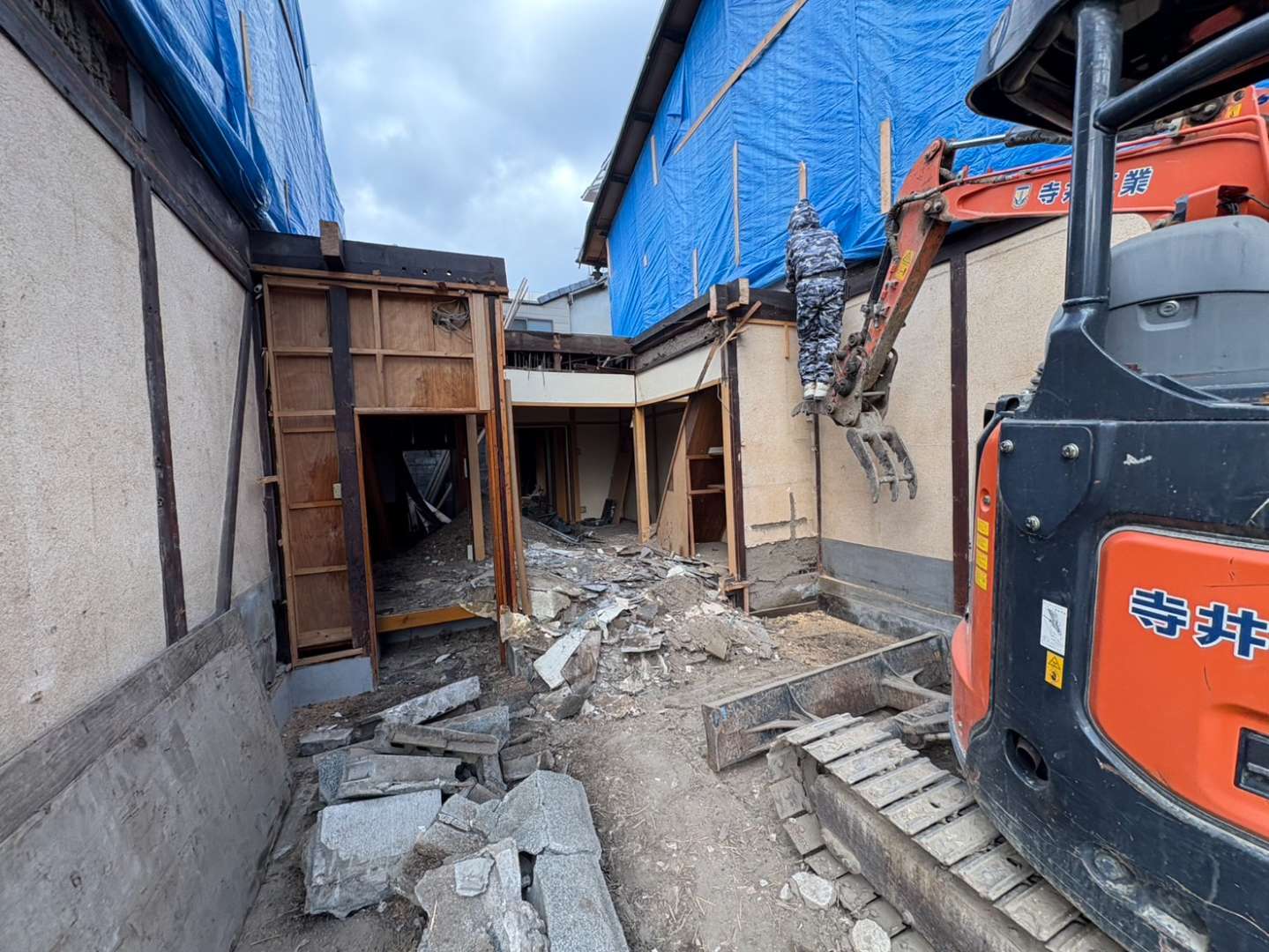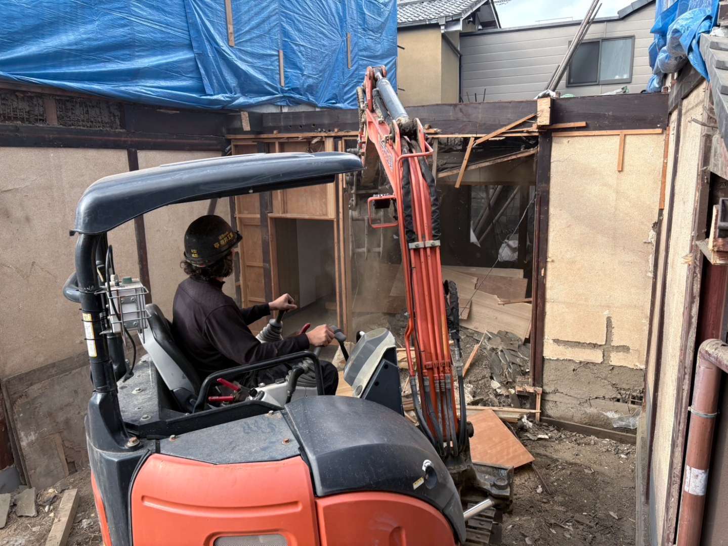 先行して人力にて縁切等を行い、慎重に重機にて解体作業を進めます🫡