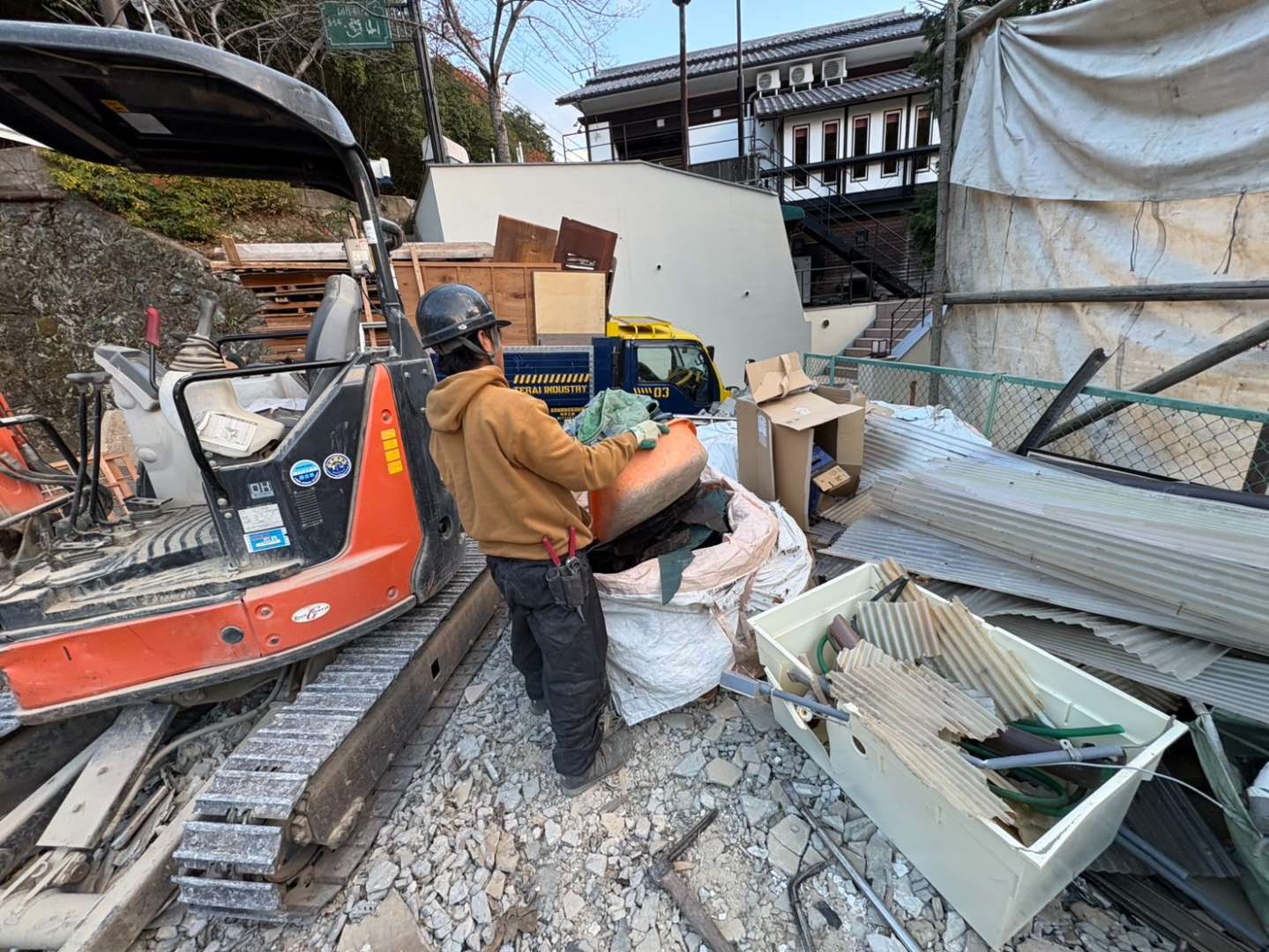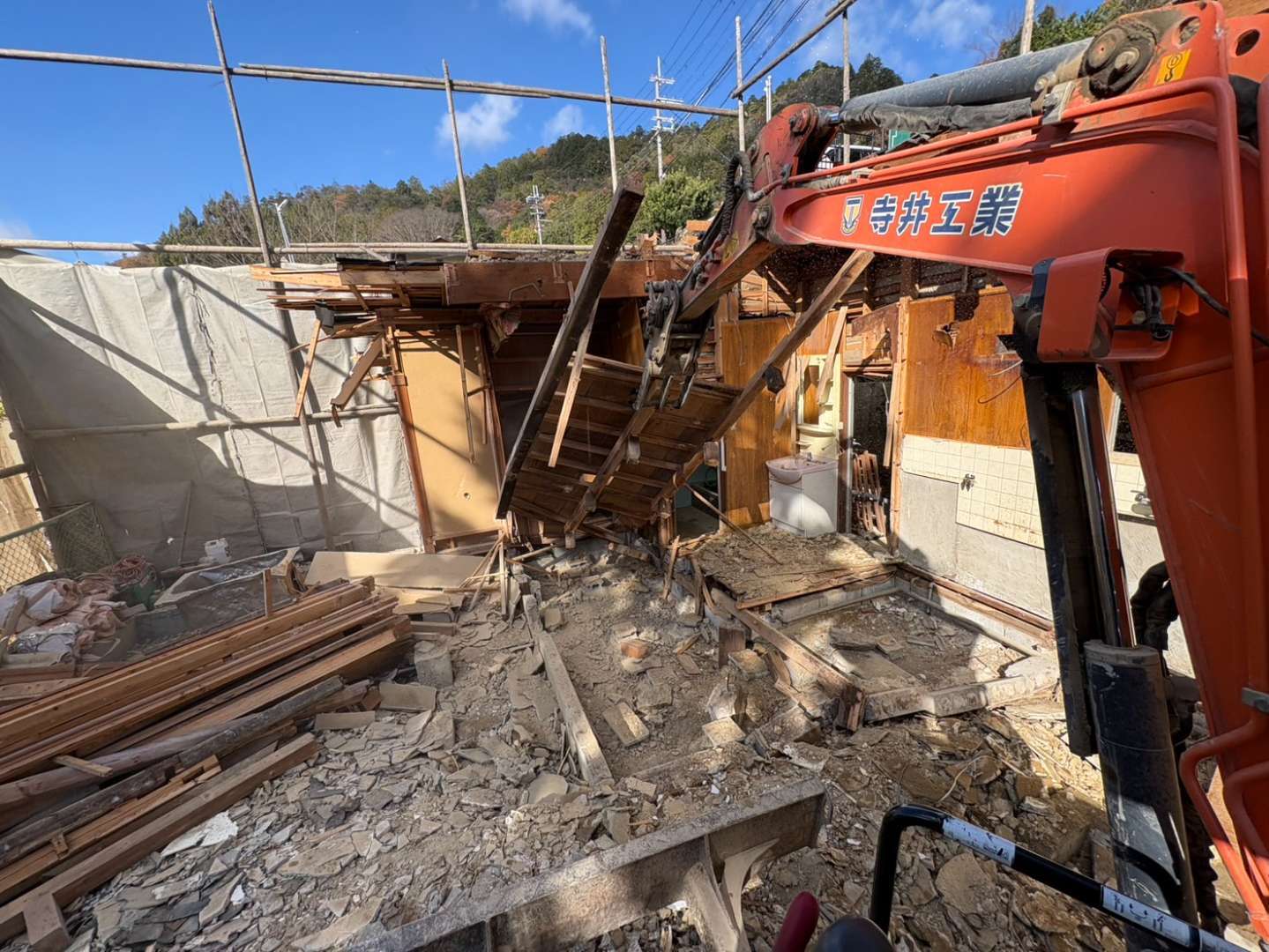 予定通り、本日上家解体完了🫡 明日午前中、品目ごとに集積しております廃材を搬出し、午後よりガレキの積み込み搬出をスタートしたいと思います👷