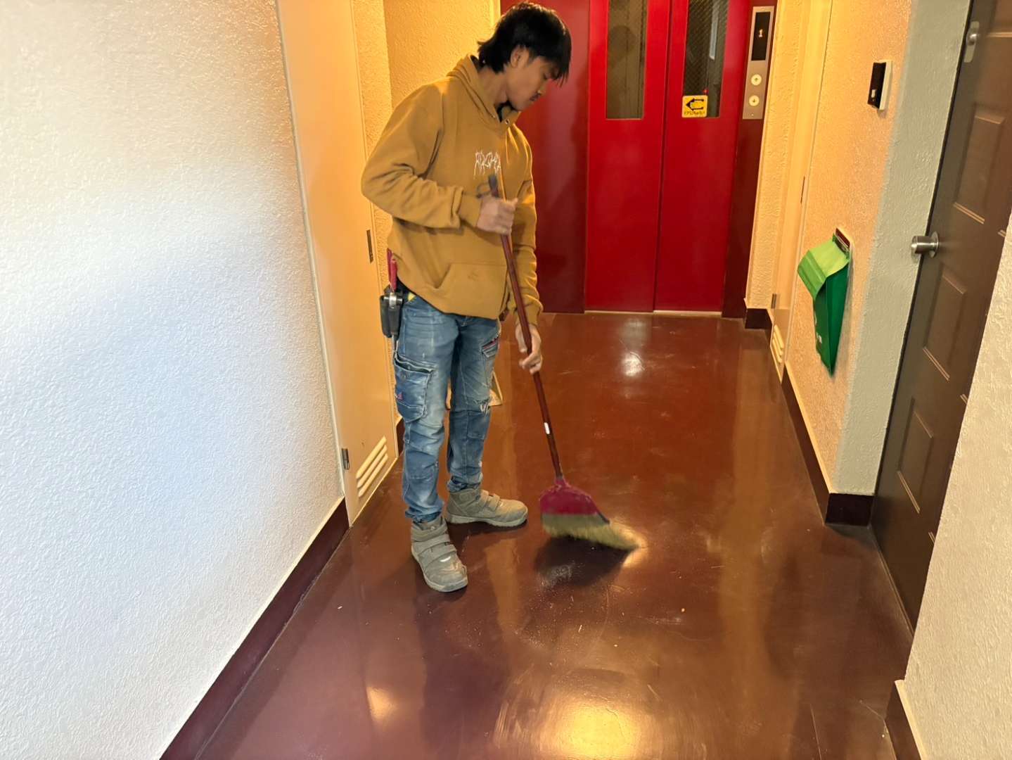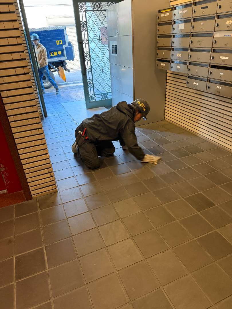室内は勿論、共用部分も雑巾掛けをして完了☑️