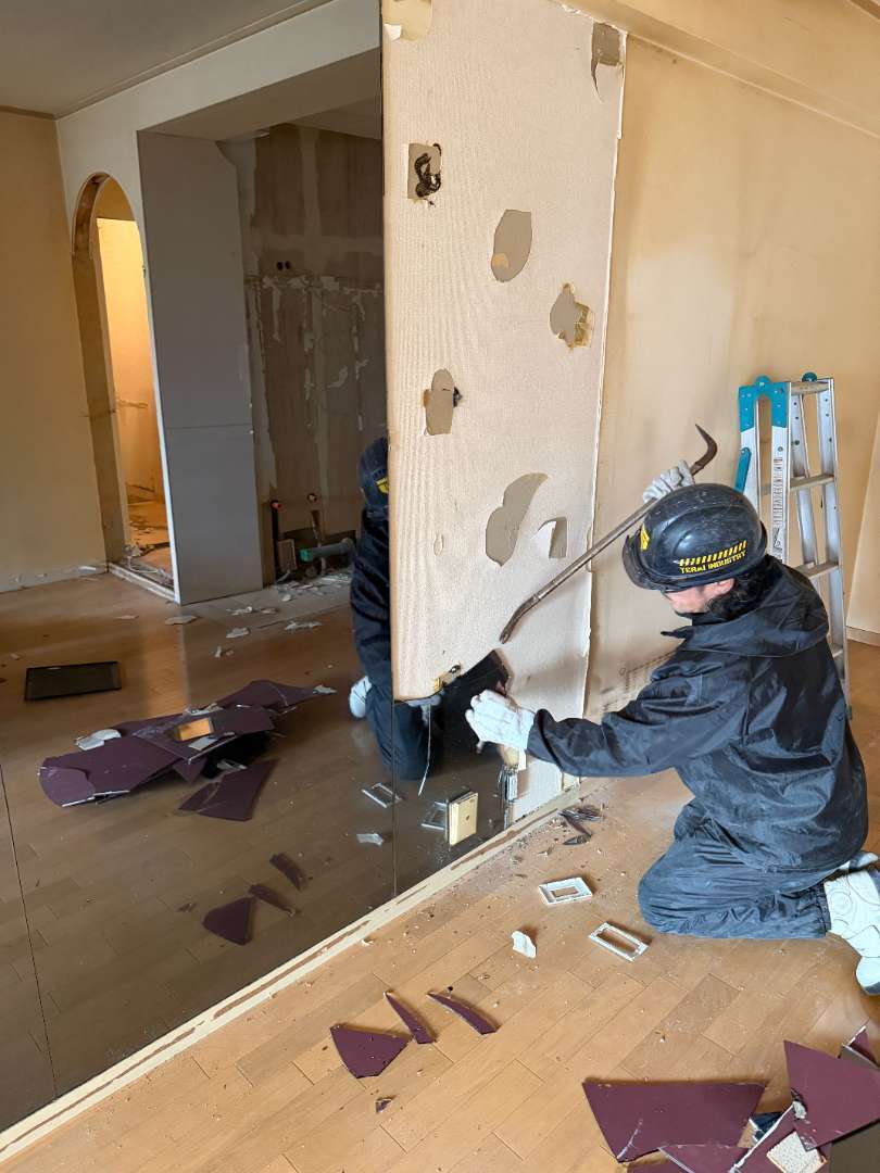 残す壁などを傷めないよう慎重に作業を進めます😊