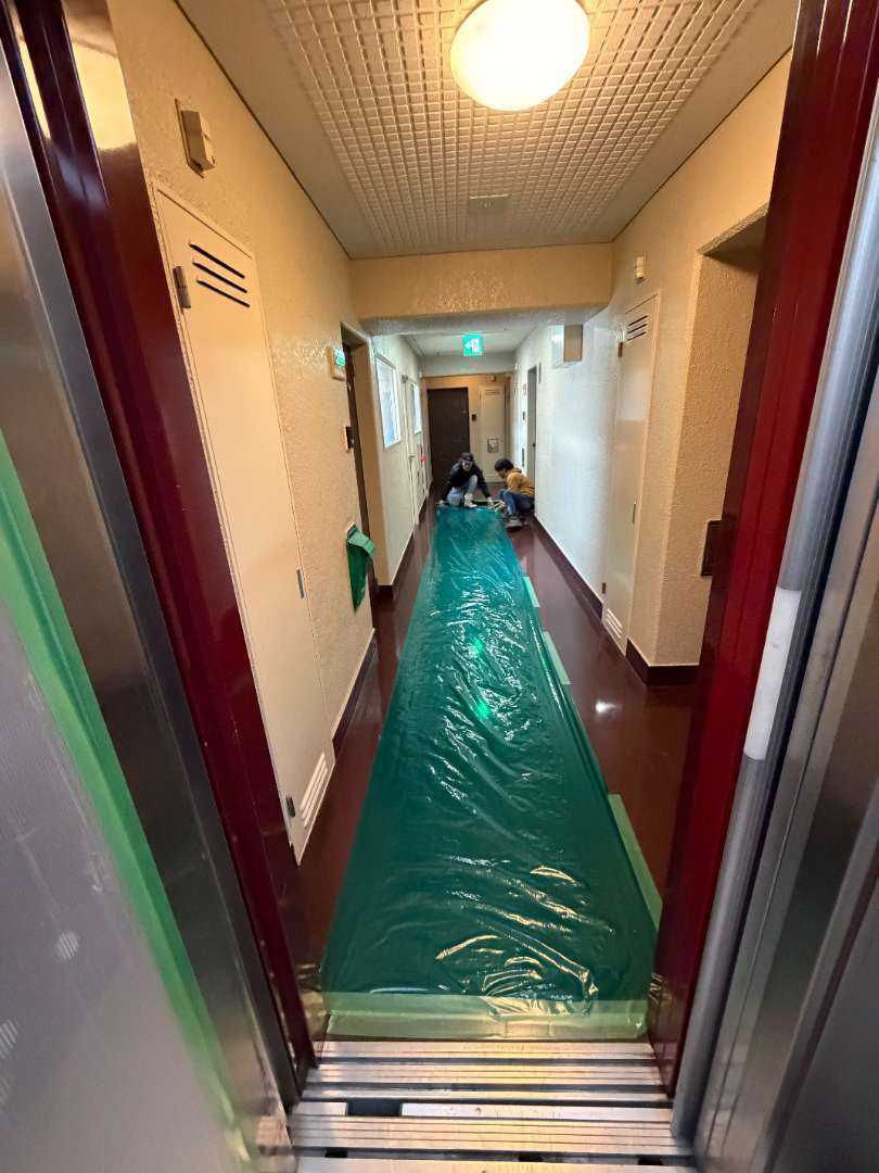 マンションの共用部分の廊下やエレベーターを搬出経路として使用させて頂きますので、傷などが付かないよう、しっかり養生🙆♂️