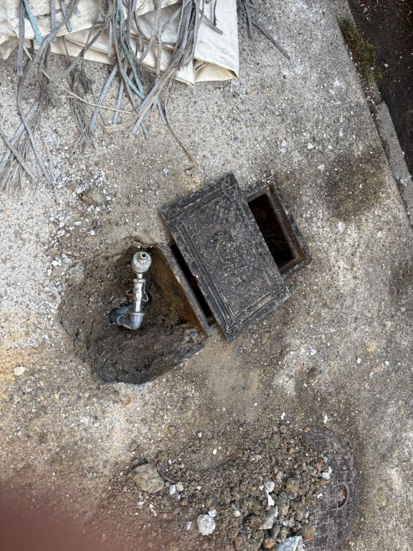 ④散水用仮設水道の立ち上げ