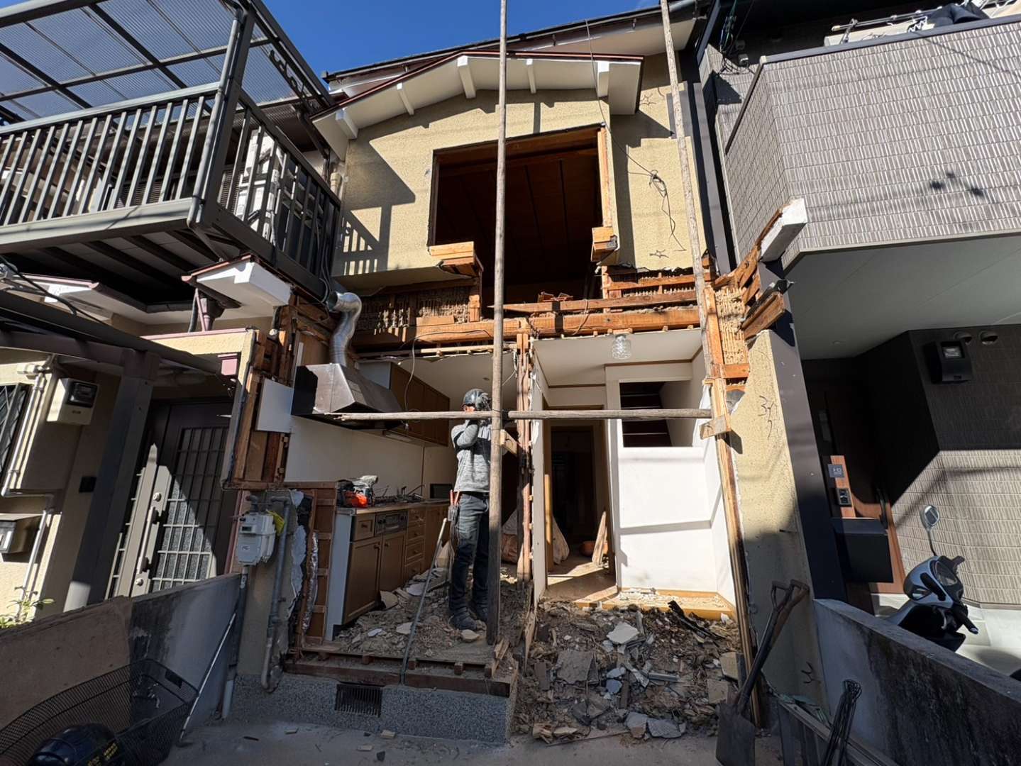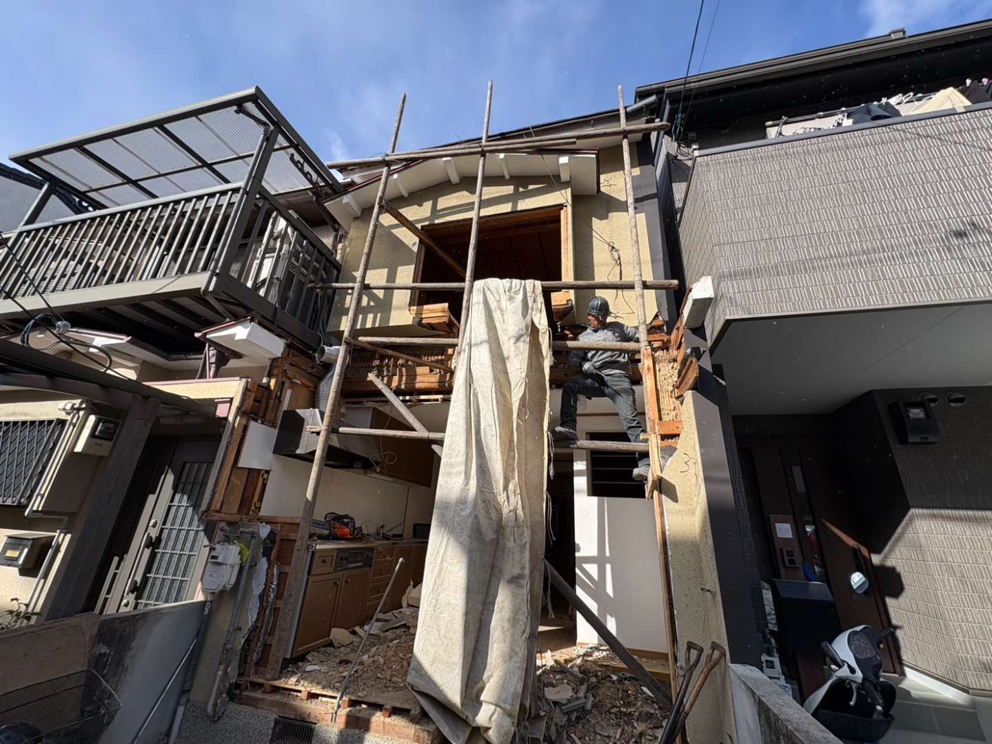 京都市木造2階建解体工事「中京区壬生神明町」DAY 1 着工