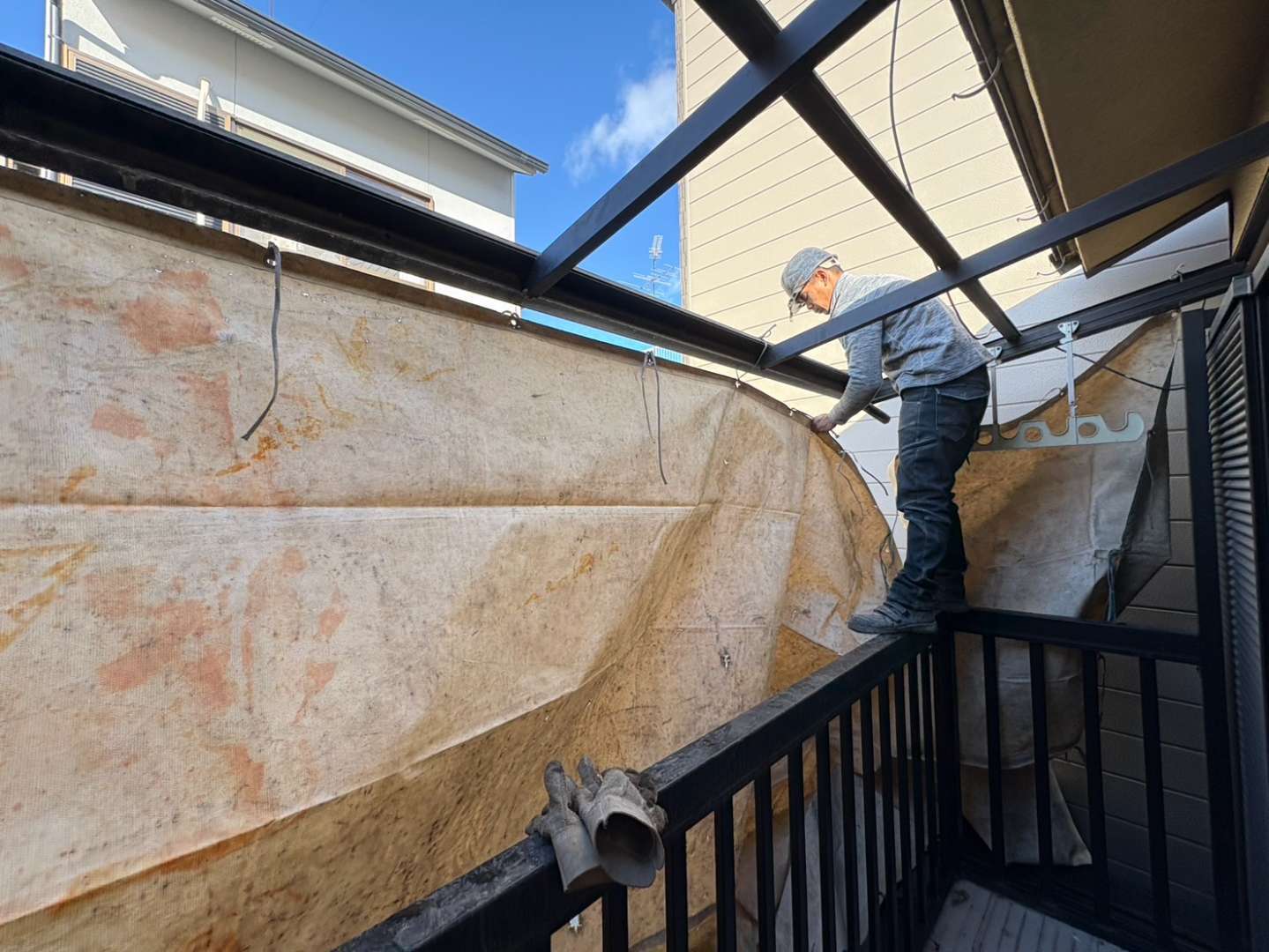 ③足場の組み立て及びシート張り