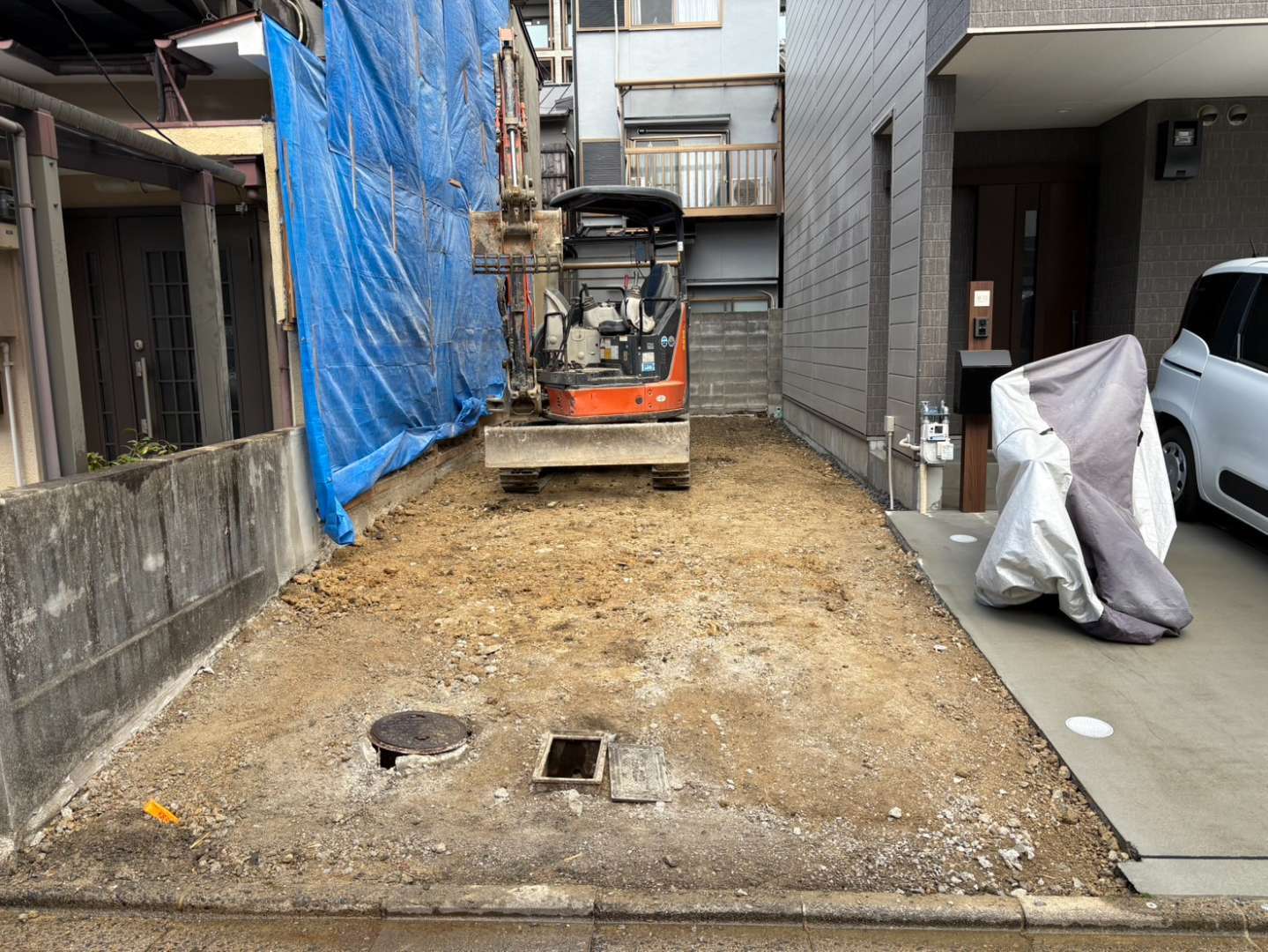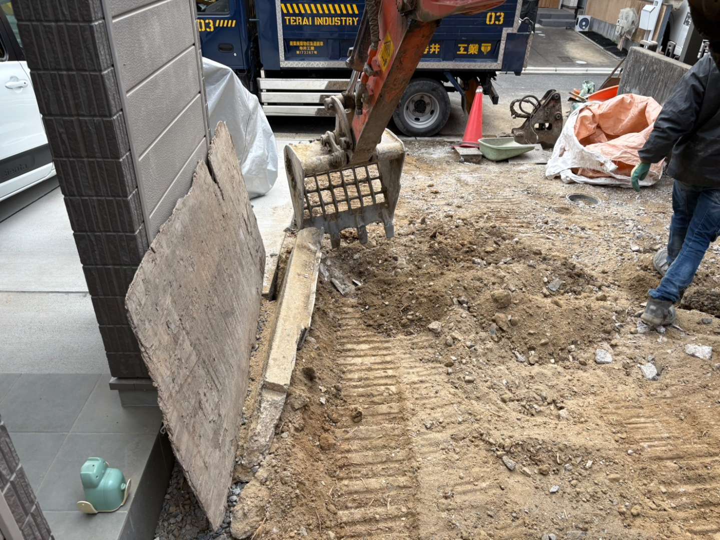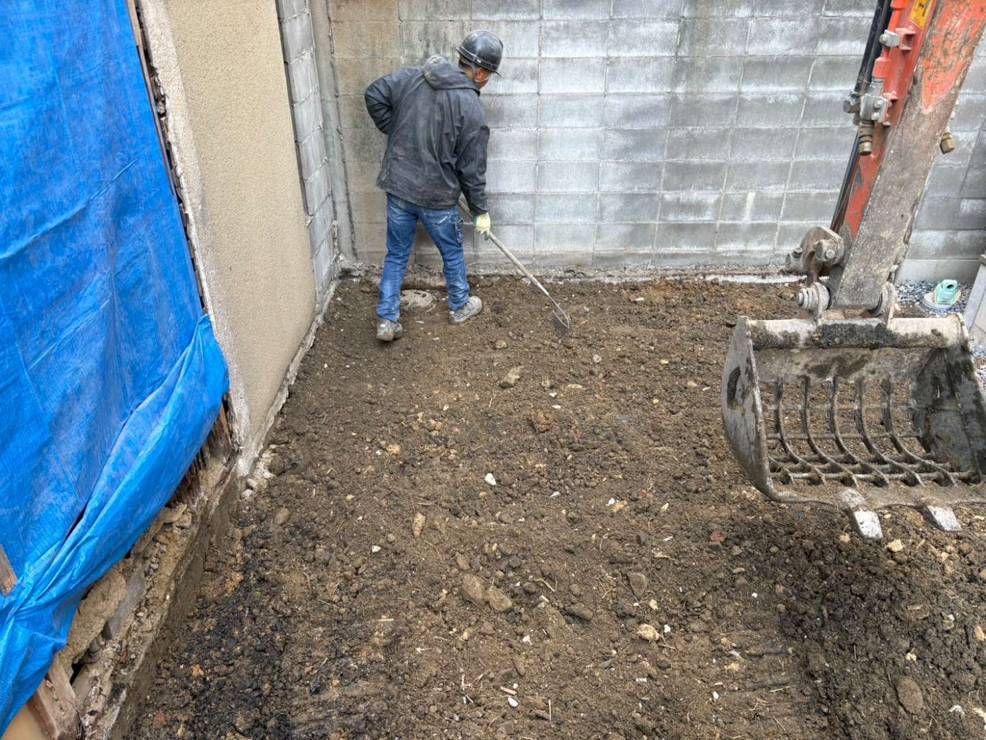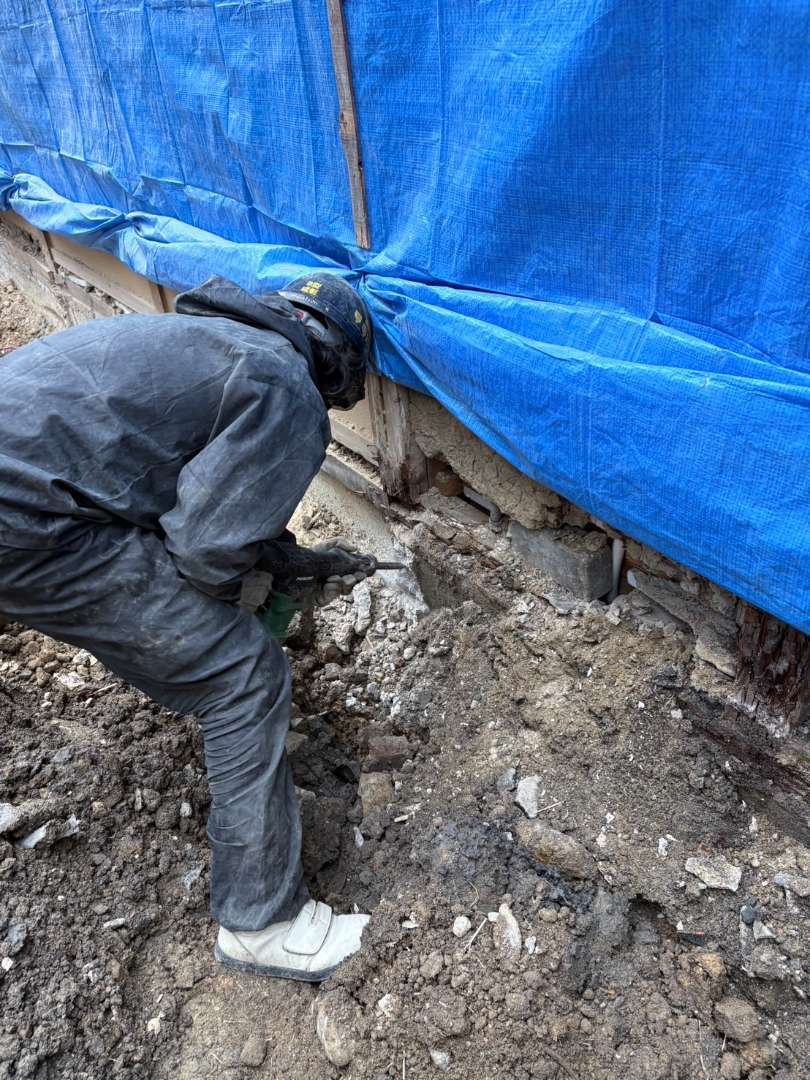 切り離し部分の基礎等は、手作業にて進めます💪