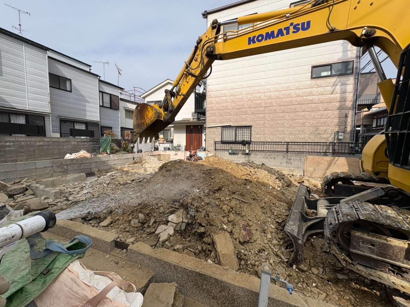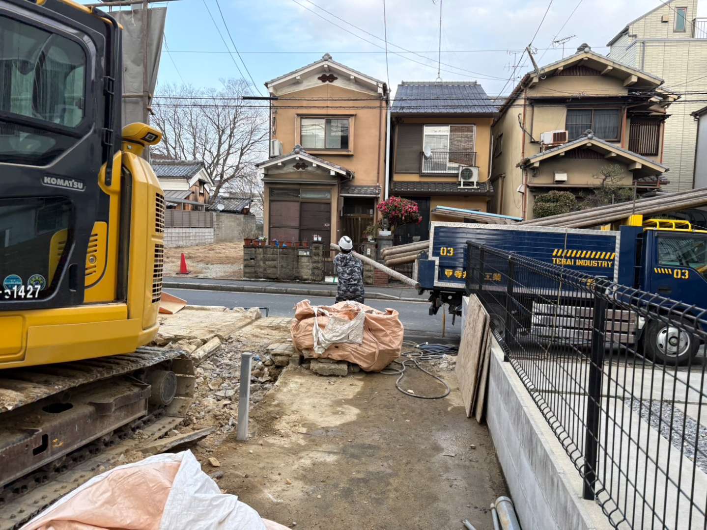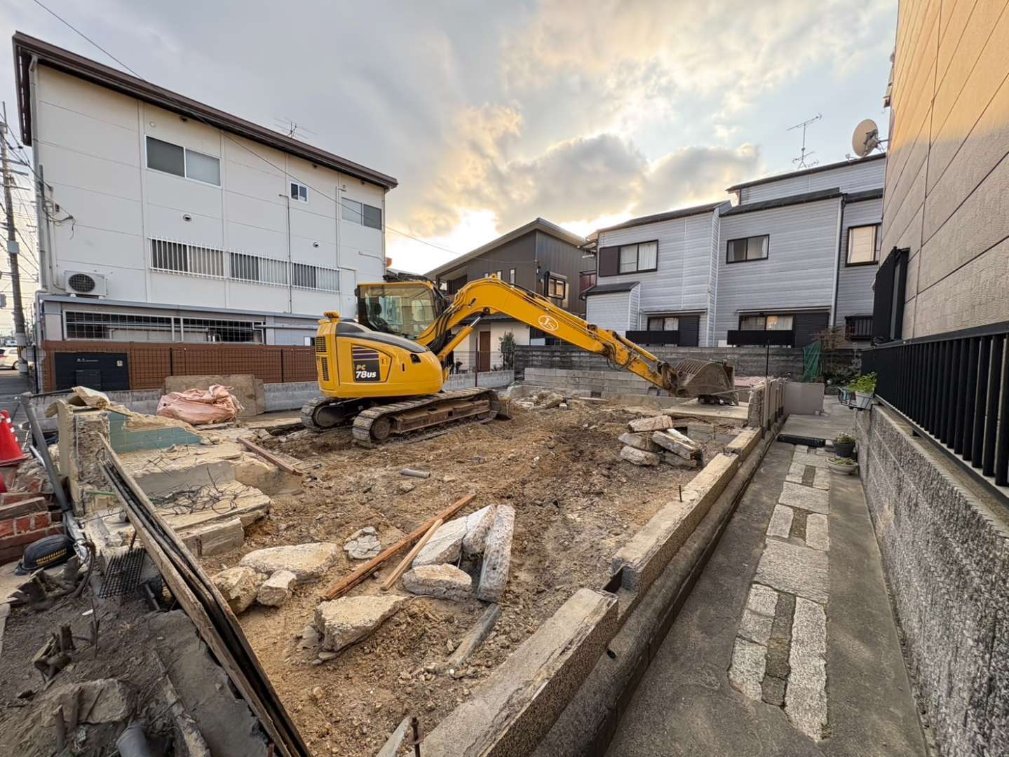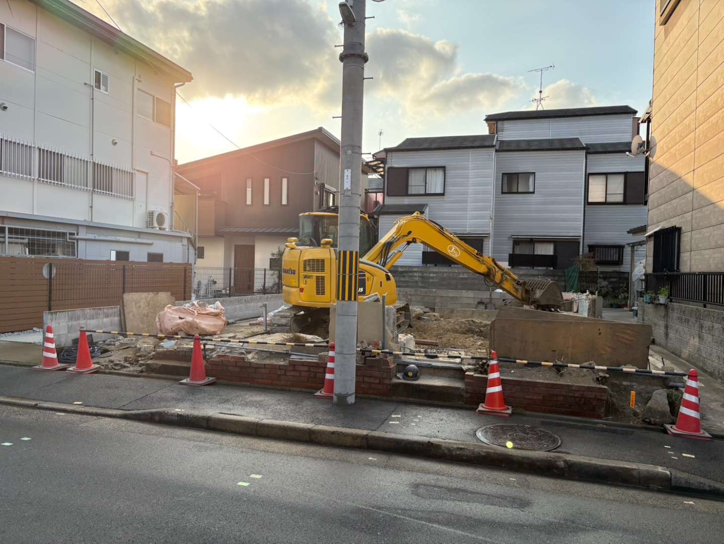 場内の集積廃材の搬出作業も完了し、現場内もスッキリ🙆♂️ 明日より基礎・土間上げ作業スタートですが、隣家との取り合いがややこしい箇所もございますので、何度も確認しながらミスのないよう進めて参ります👷