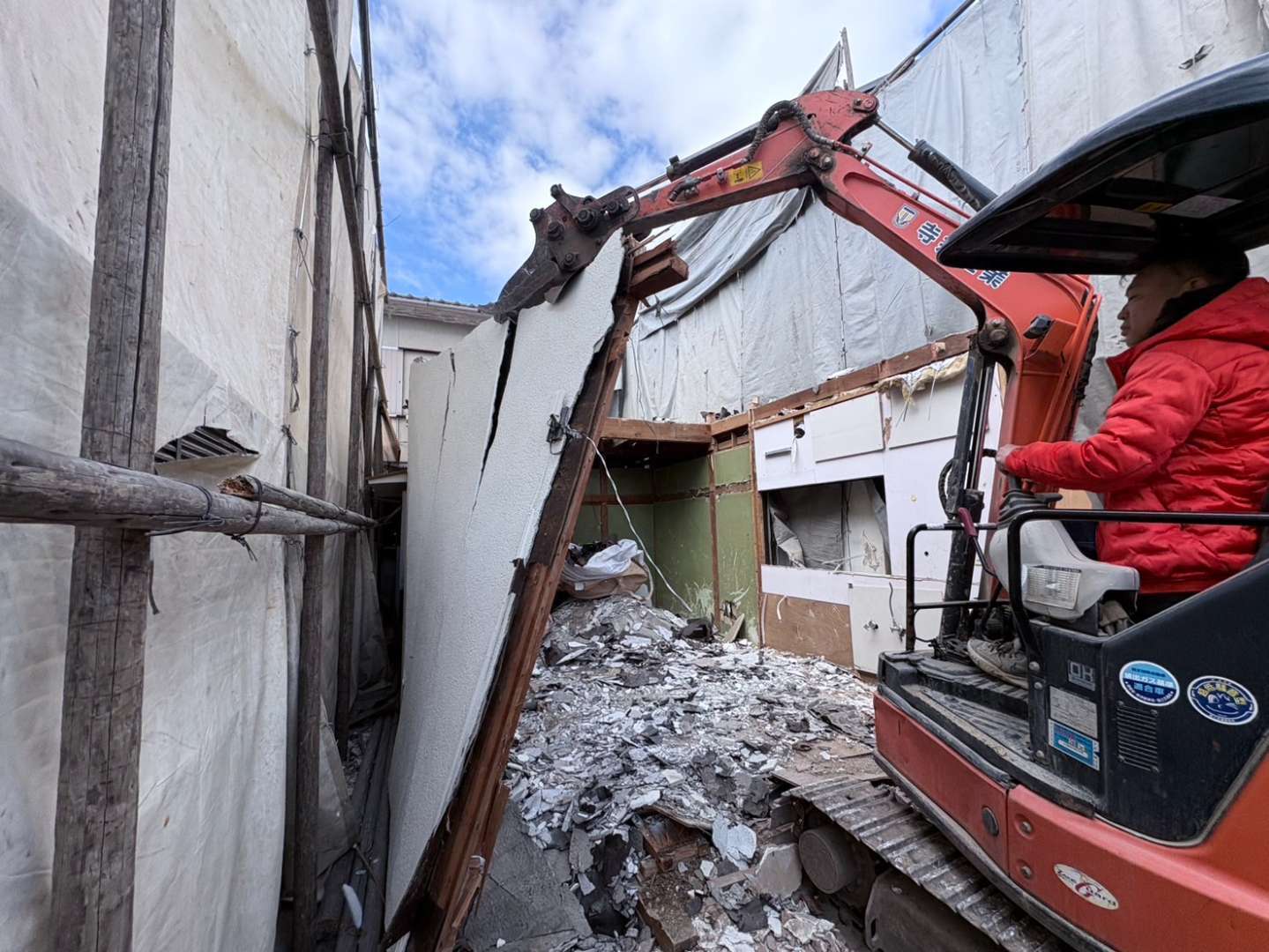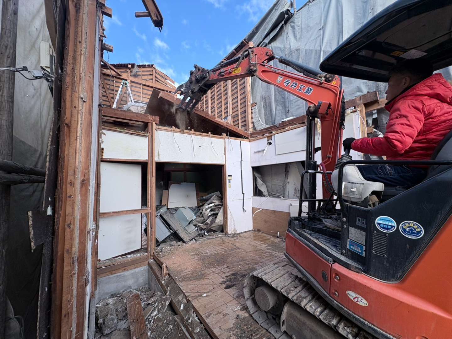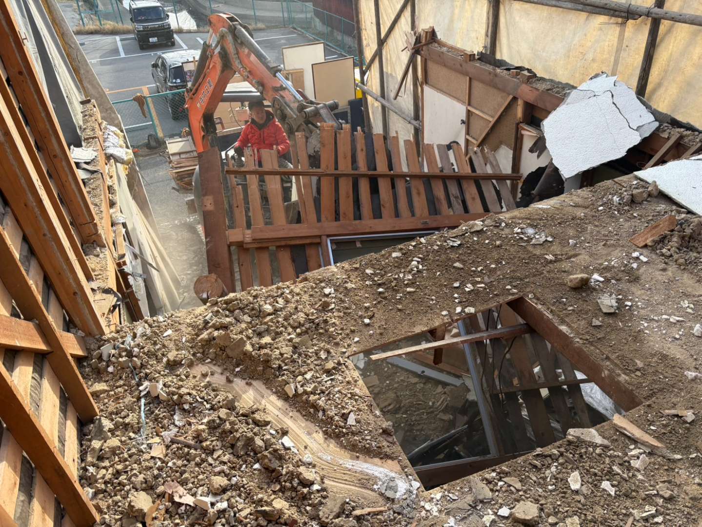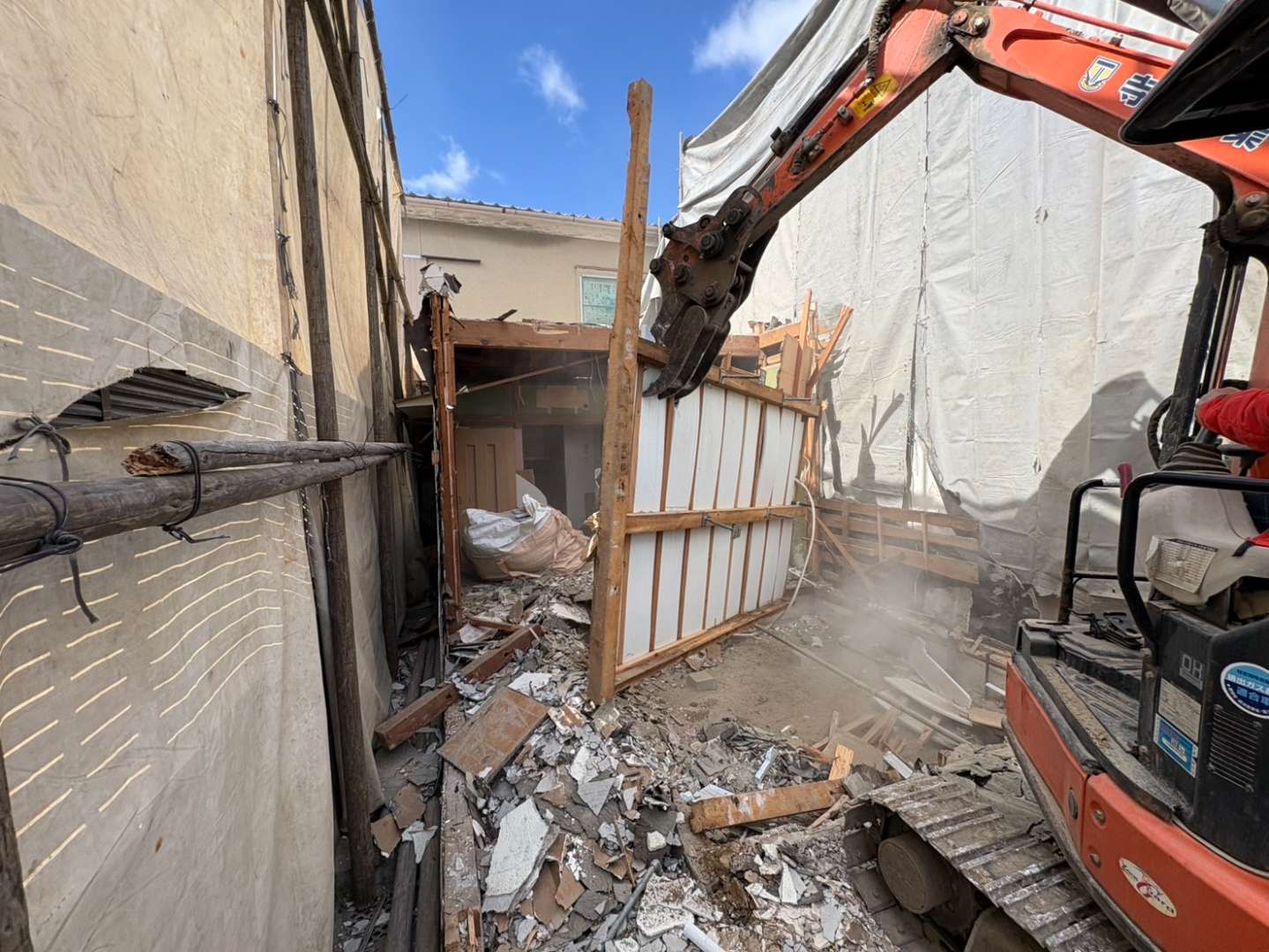 上家解体作業完了もあと少し!! 明日は午後より集積廃材の搬出と、ガレキの撤去をし、基礎上げに備えたいと思います👷♂️