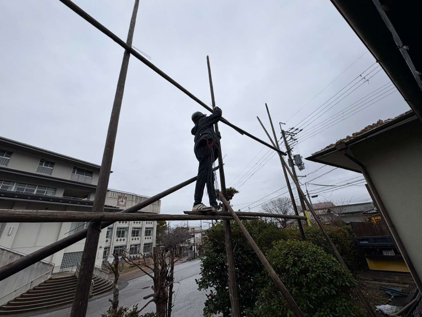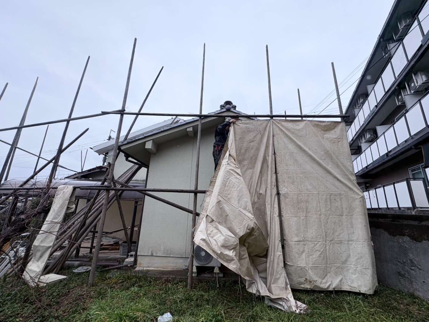 ①残りの足場の組み立て及びシート張り