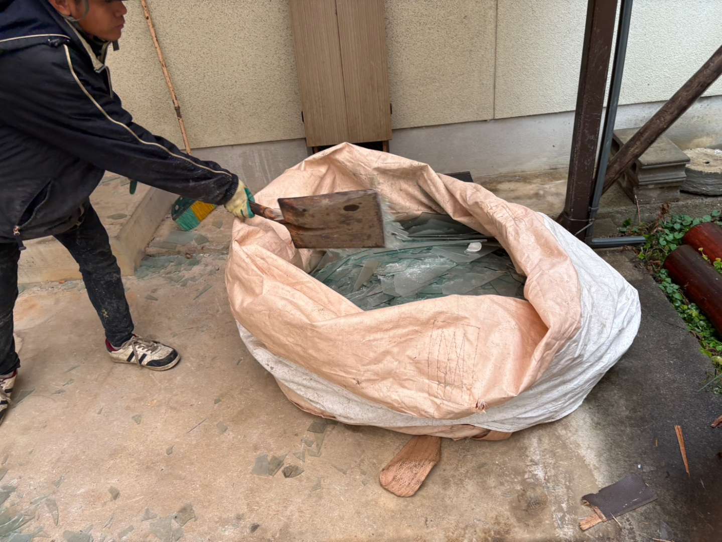 ④ガラス・陶磁器類の撤去集積