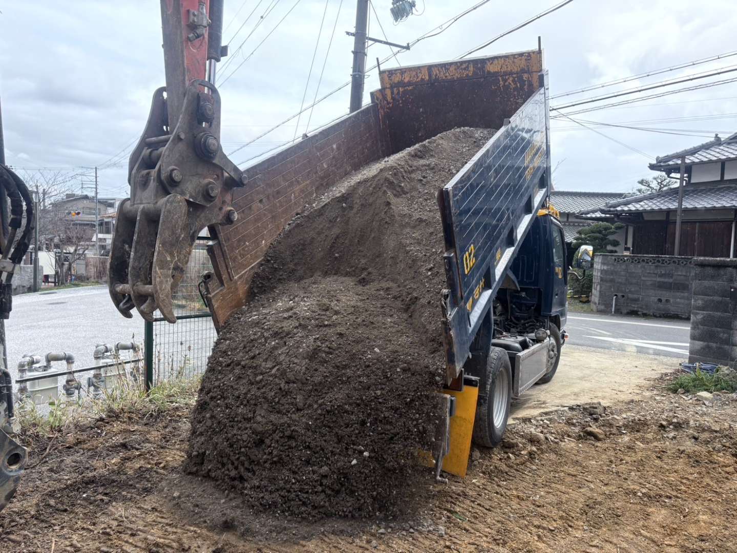 ④一部整地とRC敷き均し(ダンプ積み込みスペースの確保ダンプ積み込みスペースの確保)