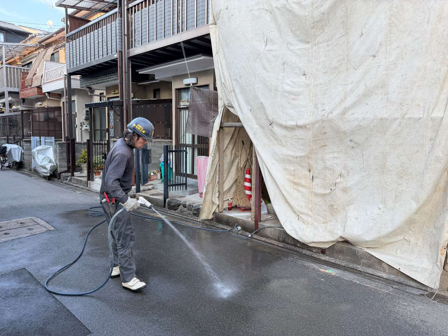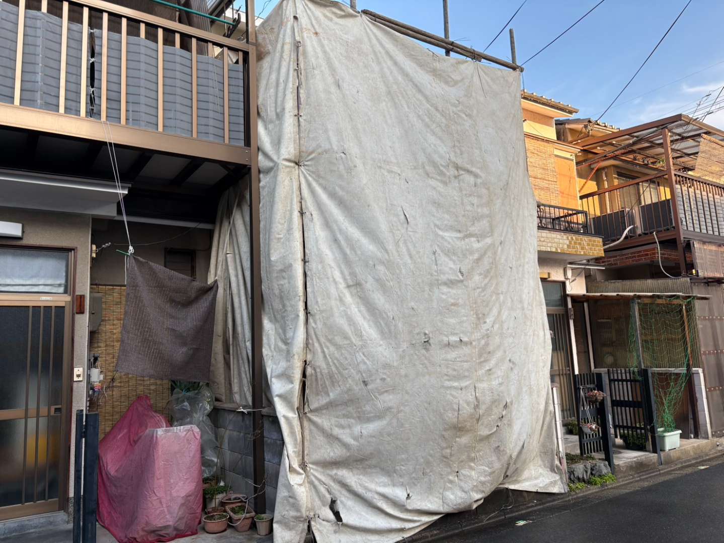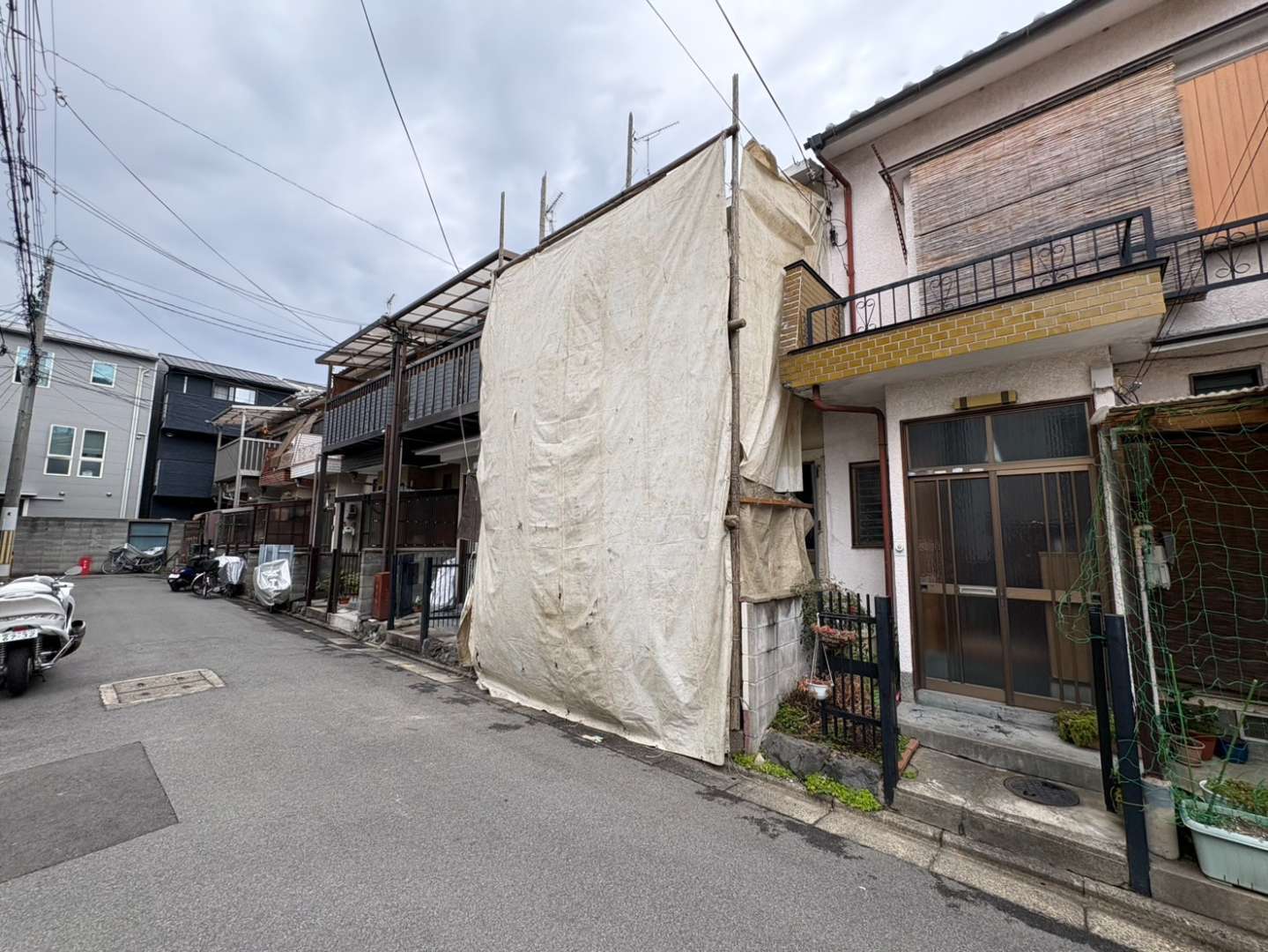 今回の現場は、以前解体させていただいた現場の真向かいの、「下京区西七条比輪田町」にて木造2階約15坪専用住宅(両側切り離し)の解体撤去処分工事🚧