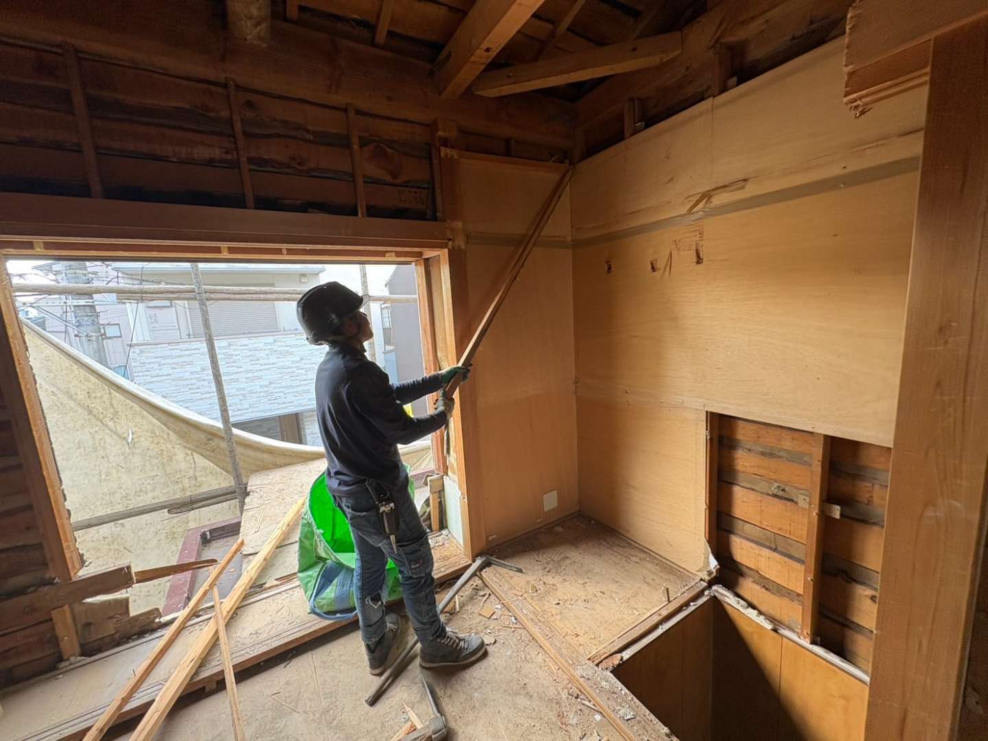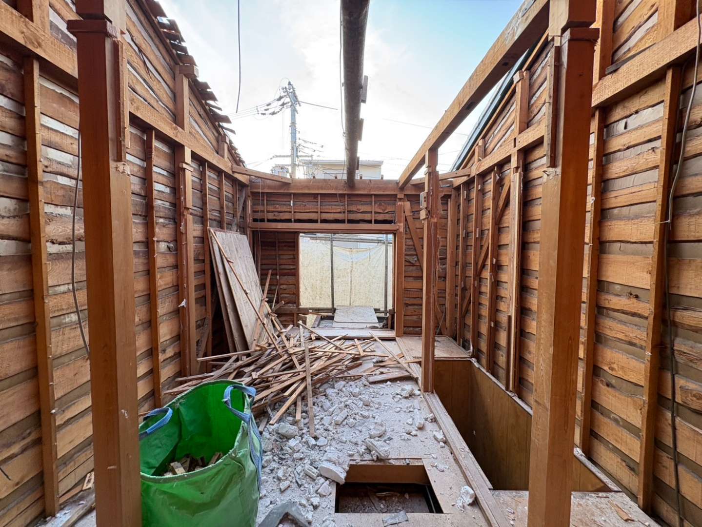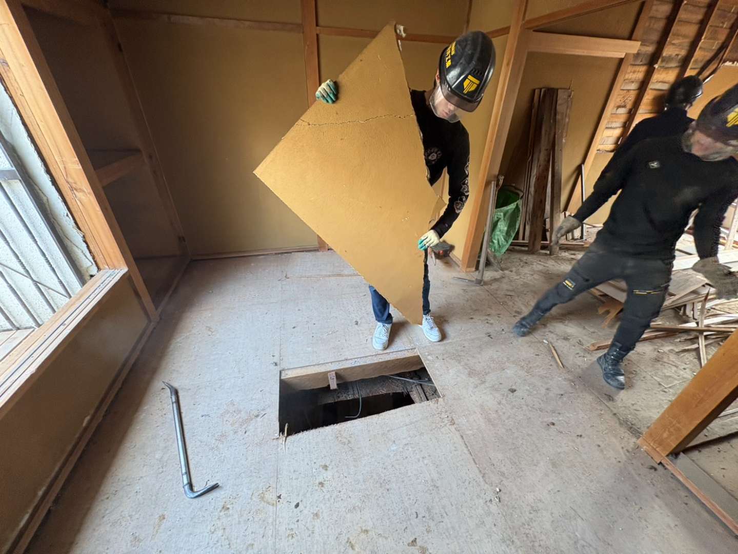 着工初日にしたかった作業も全て完了し、気分最高です💯 明日、継続作業で屋根を切り落とし後は、2F4面人力壁倒し!! 重機併用作業の準備しっかり行います🫡