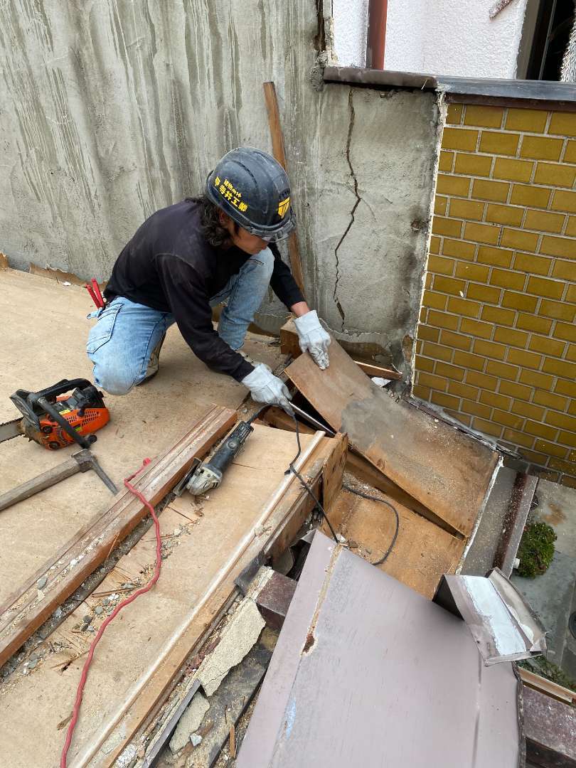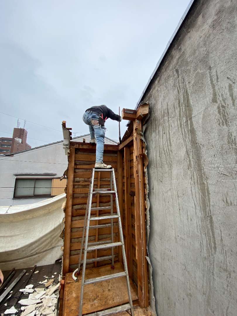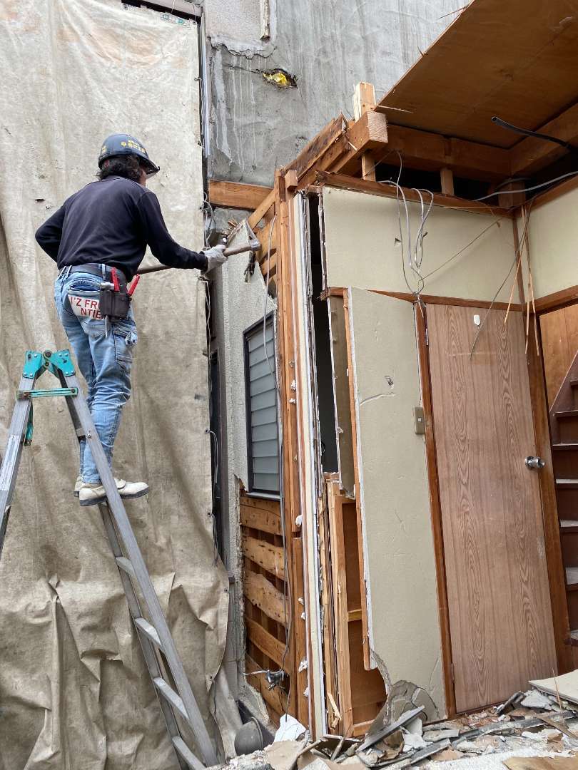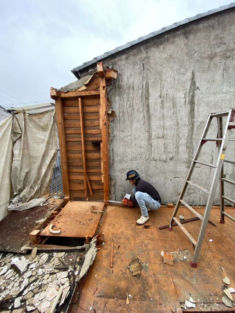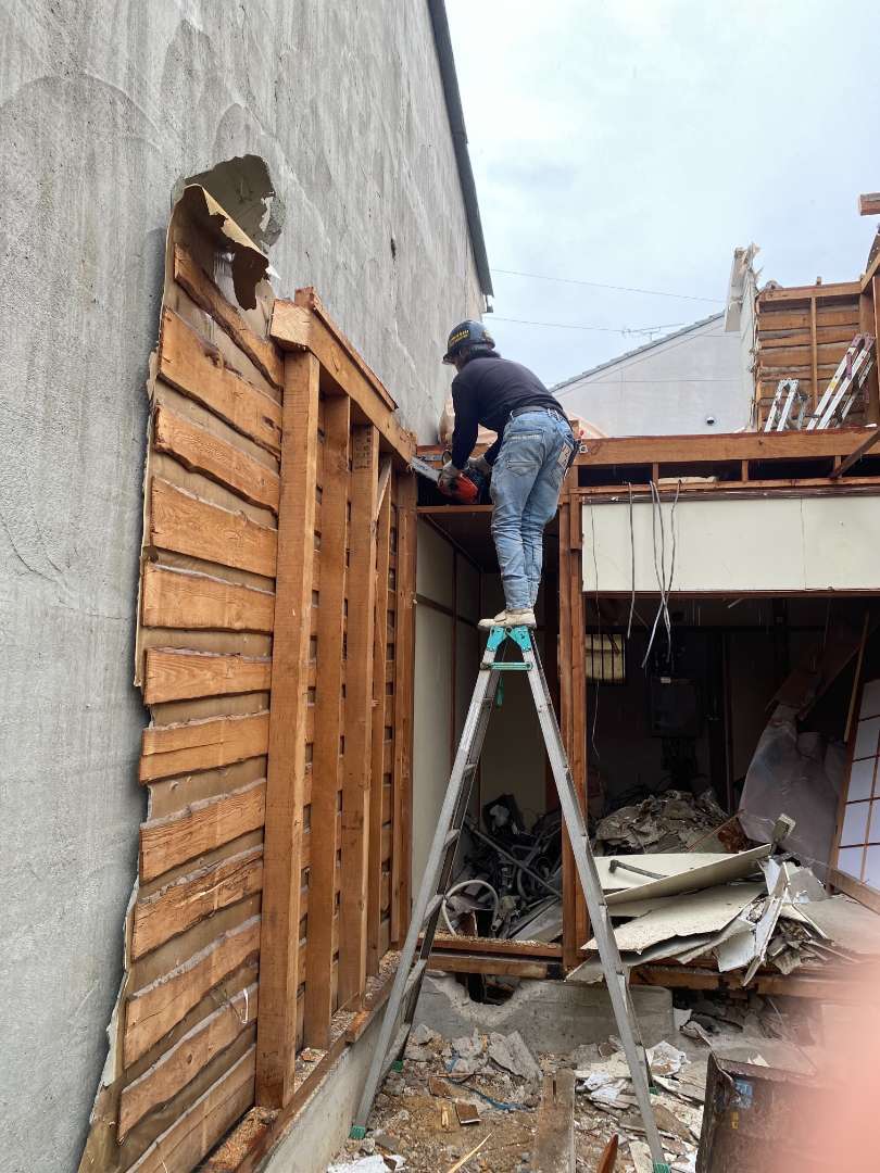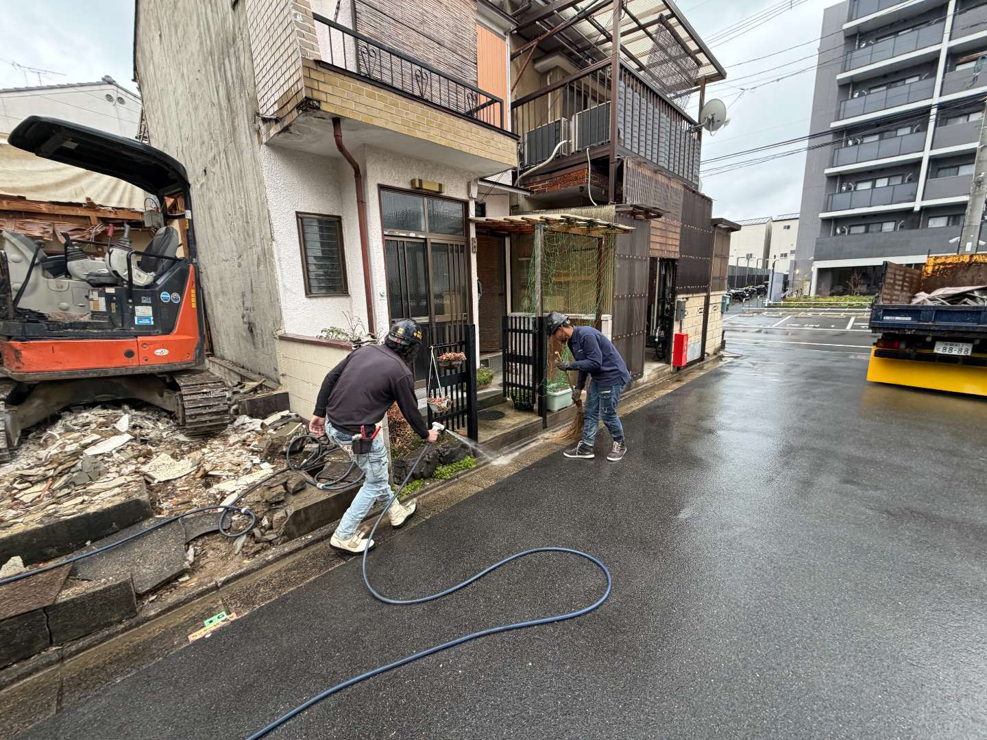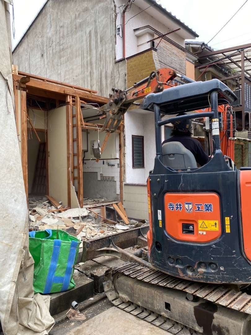 上屋解体作業完了まであと少し🤏 両側せ合わせにつき、隣家との距離も数センチですので、接触事故等無いよう、最後の最後まで安全確認しながら焦らず丁寧に作業を進めて参ります🫡