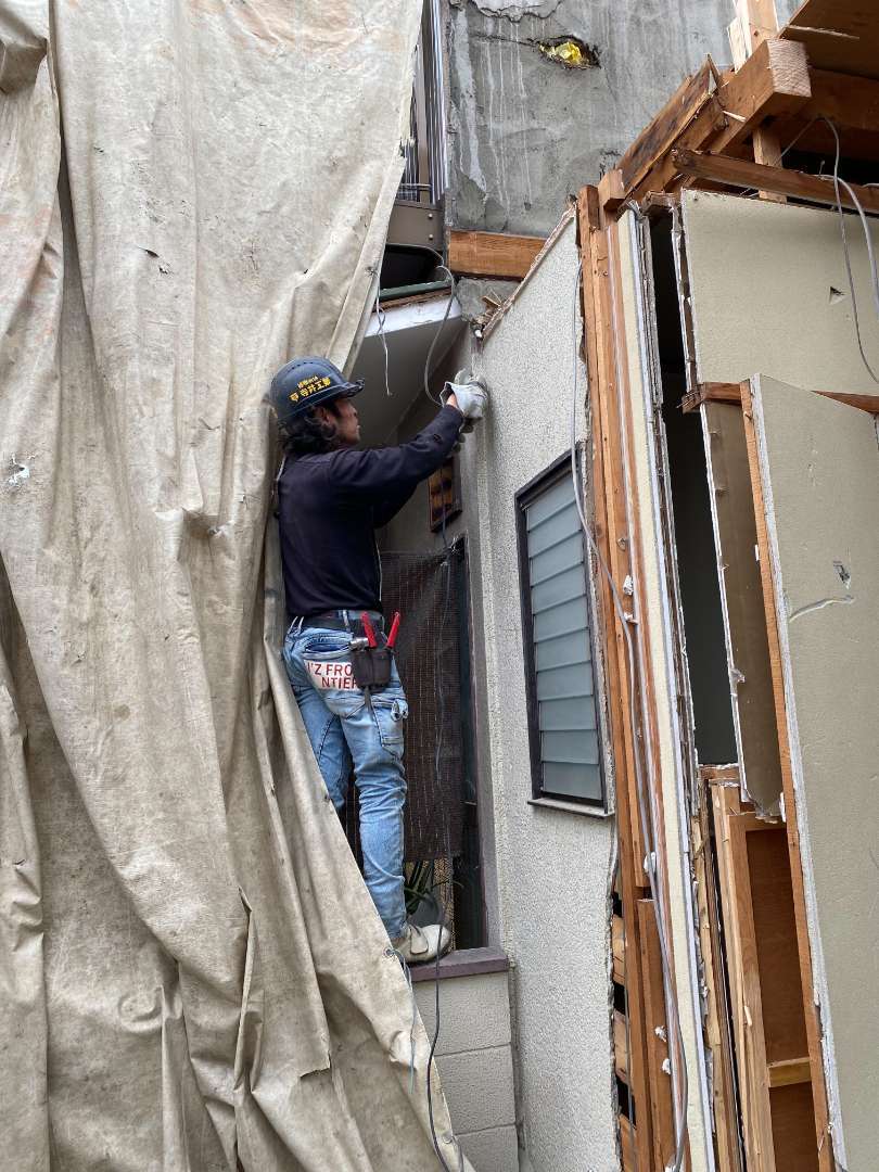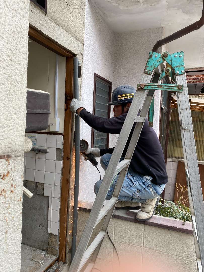 両隣のモルタルが破損しないよう、カッター切りを行い、丁重に縁切り✂️